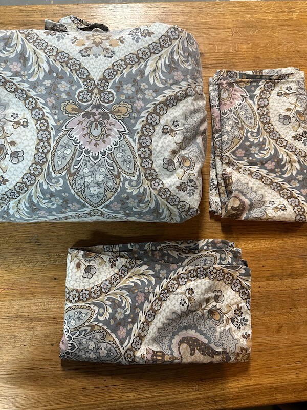 POTTERY BARN Darcy Floral Medallion You are viewing a duvet cover and 2 pillow shams set with a classic pattern from Pottery Barn. In nice, gently used condition. Normal wear/fade (duvet more-so than the shams) Duvet Size: King Fabric: 100% Cotton Pattern: Darcy Floral Medallion (the background is blue-gray) Please see all the other high quality items that I have up for sale right now!!. Buyer to pay $12 Shipping. (Within the US) Thanks for looking!