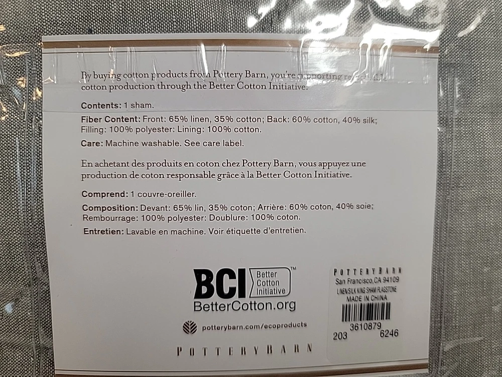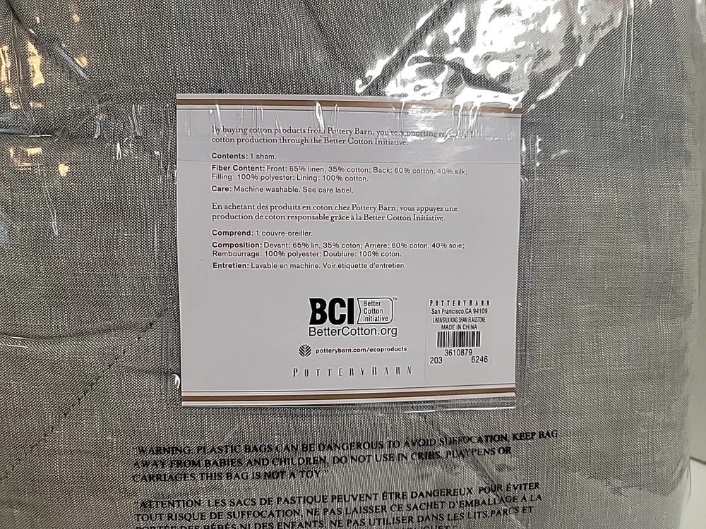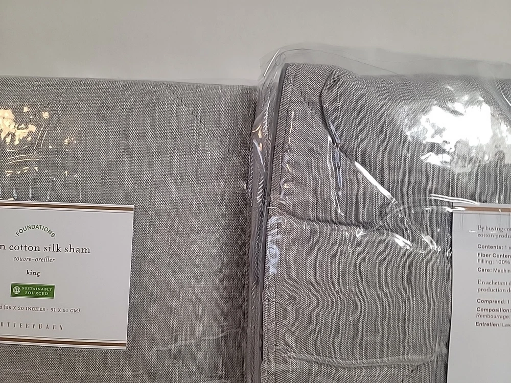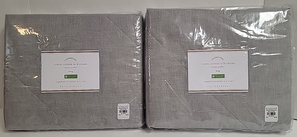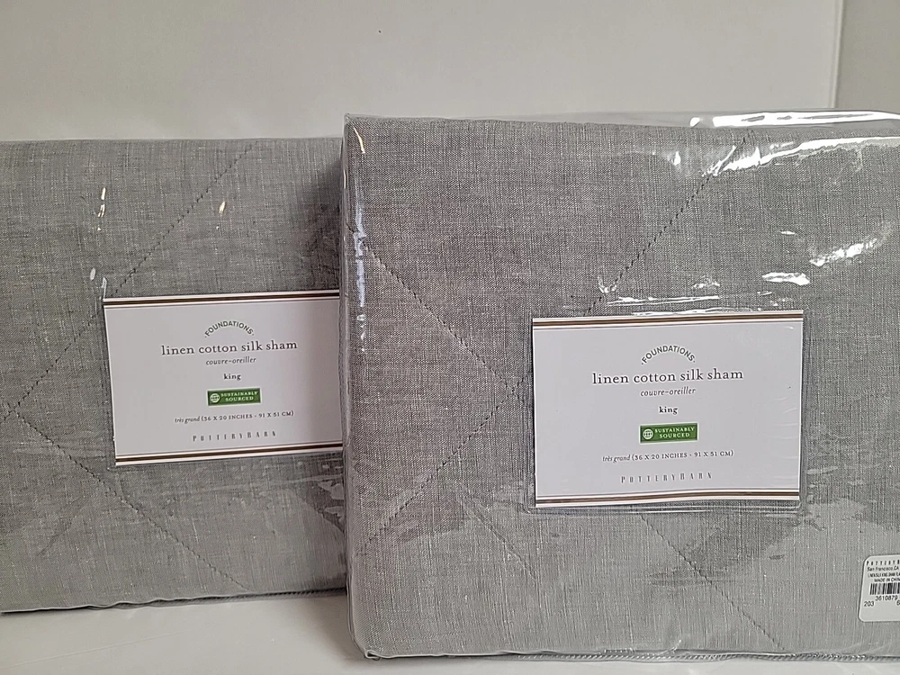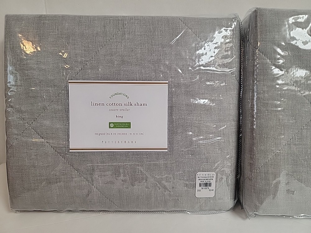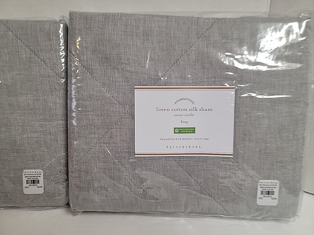 Up for purchase is this POTTERY BARN LINEN COTTON SILK KING SHAM 36X20 FLAGSTONE SET OF 2 SHAMS 3610879 Construction • Front fabric is made of yarn-dyed 65% linen and 35% cotton ; reverse fabric is 60" cotton and 40% silk. • 100% polyester batting. • Sham features a tie closure. Items ship to your Paypal confirmed address only (no shipping to unconfirmed addresses). Bid with confidence as I am great to work with and WILL SHIP PROMPTLY! Please ask all questions prior to purchase as RETURNS ARE NOT ACCEPTED.
