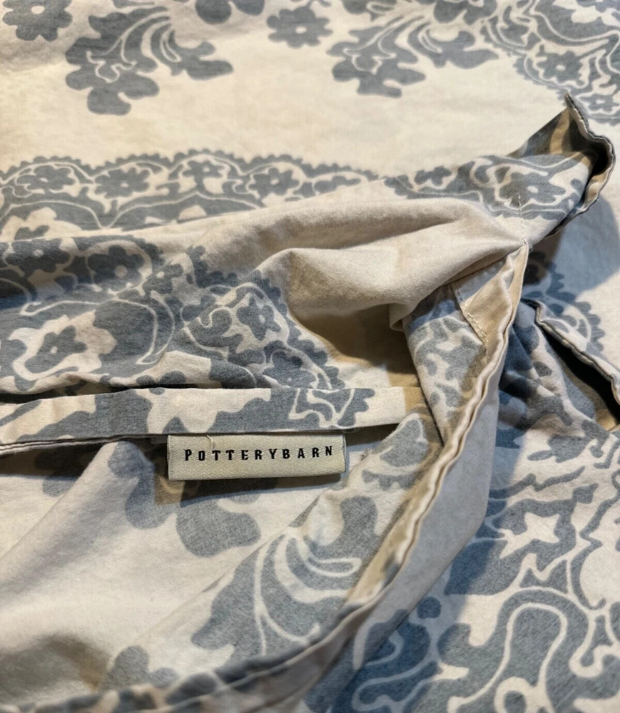 POTTERY BARN MEDALLION FLORAL PORCELAIN BLUE FULL/QUEEN SIZE DUVET COVER