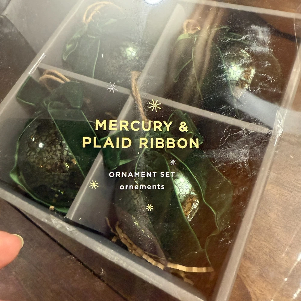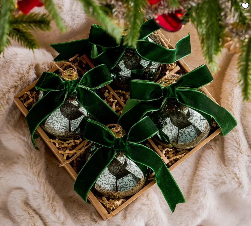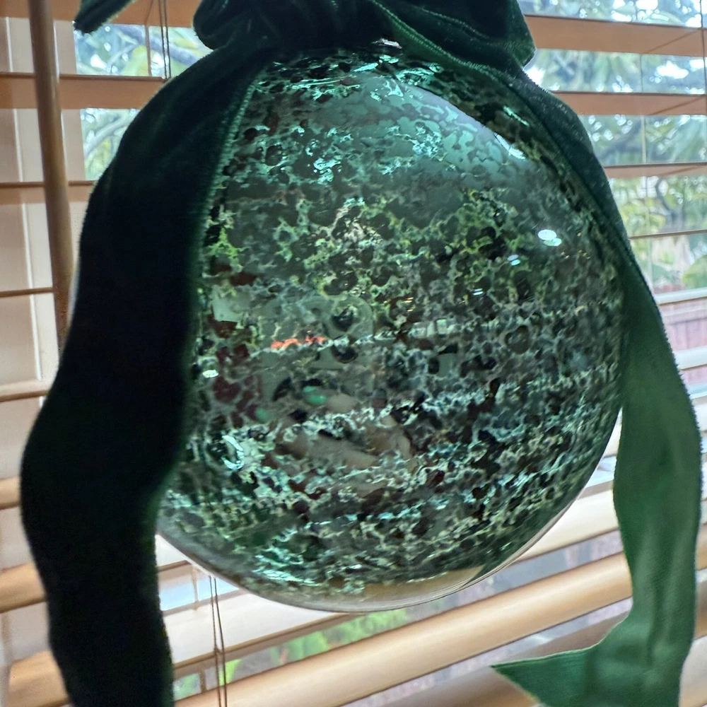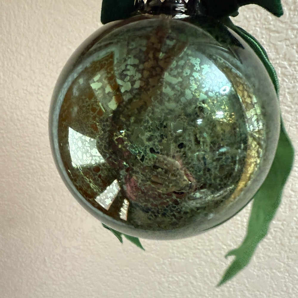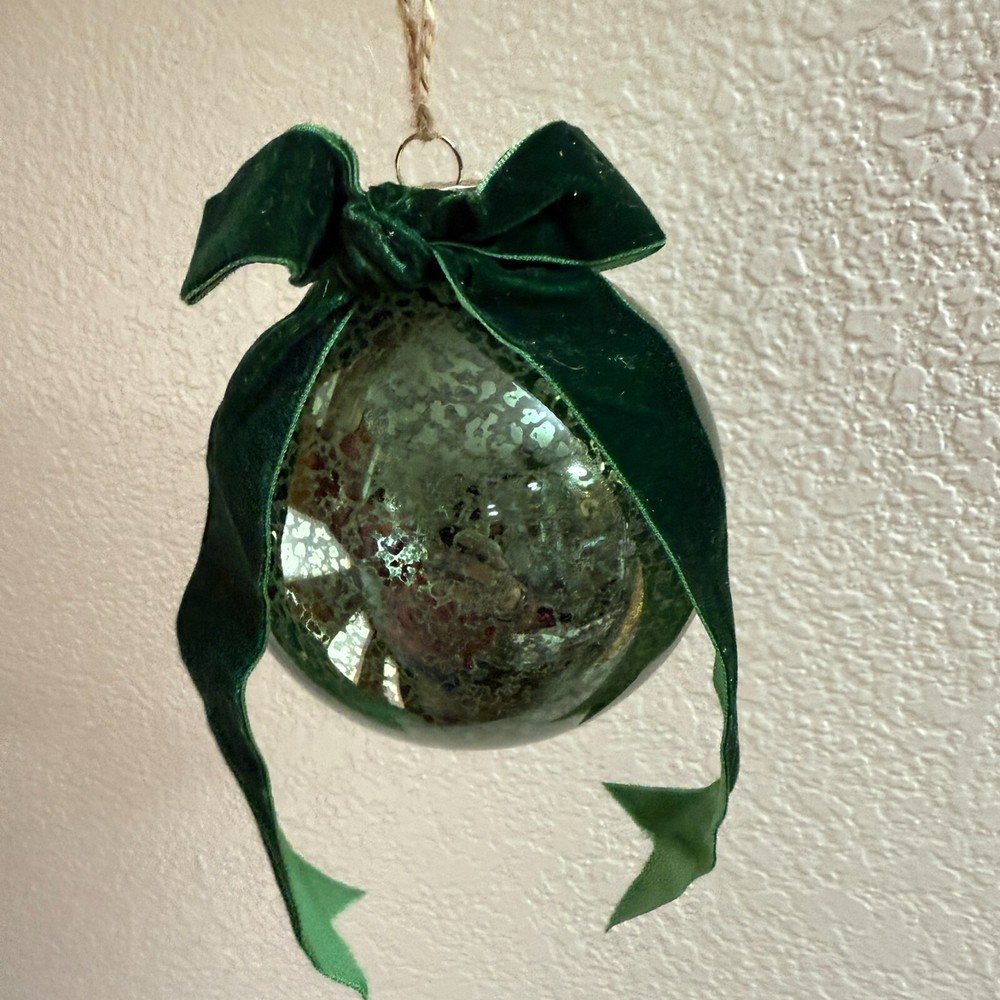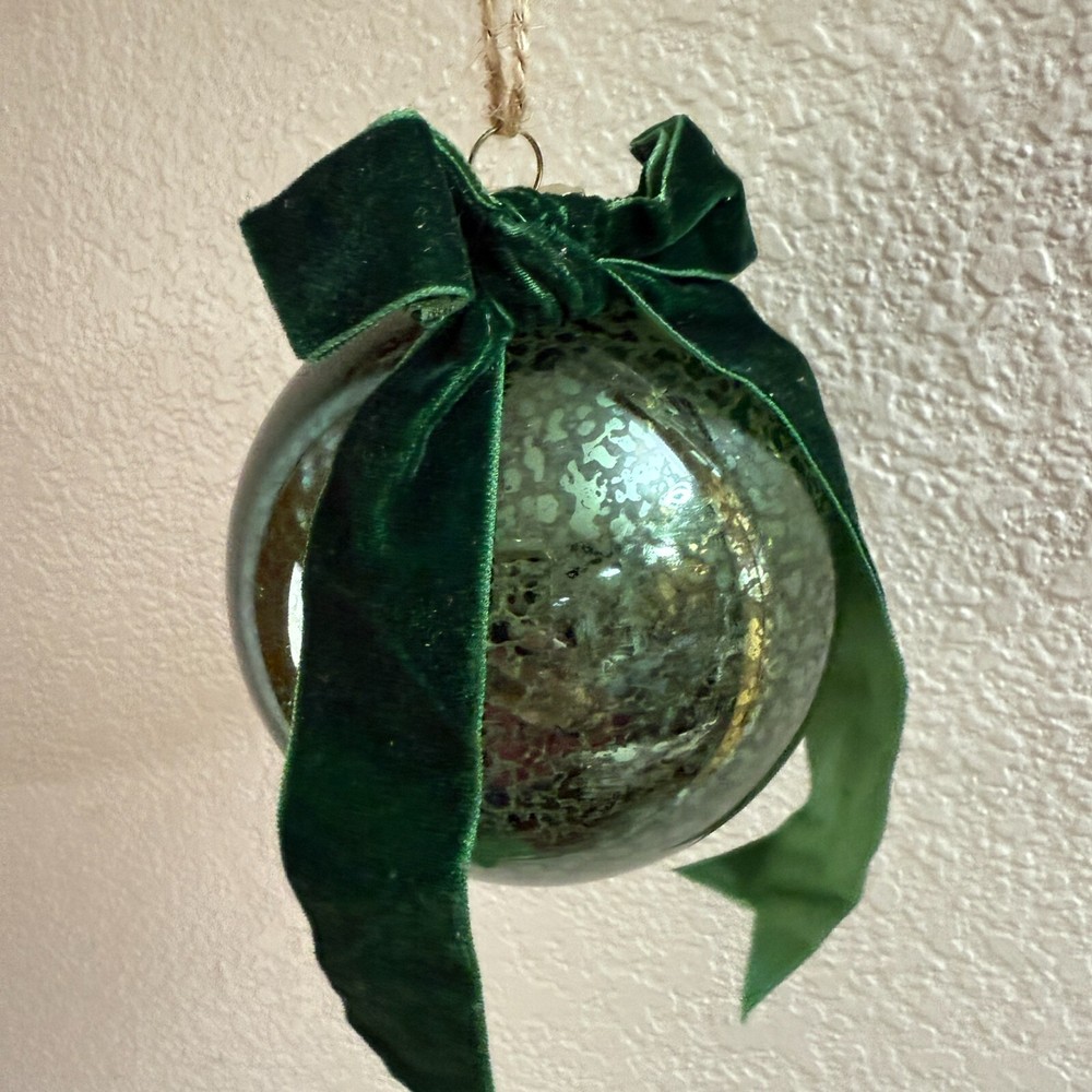 These ornaments bring such elegant vintage charm to my tree! The mercury glass has a beautiful antique finish that catches the light perfectly, and the velvet bows add a festive touch. They feel well-made with sturdy glass and a quality ribbon. Love the green color—it blends perfectly with my holiday decor. Even though they're discontinued, I'm so glad I snagged them while I could! Great size, arrived quickly, and add instant classic style to every Christmas.