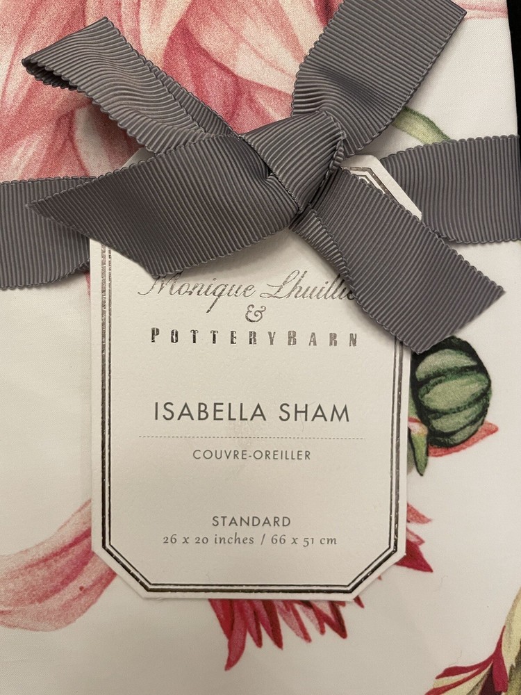 Pottery Barn Monique Lhuillier Isabella Duvet & Shams Duvet: Full / Queen 2 Standard Shams Brand new, mint condition, with tags, smoke free & pet free home. Please visit their website for more detailed photos of the color