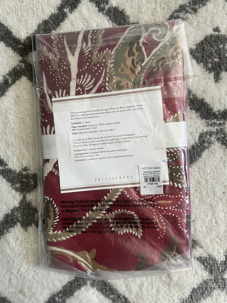 POTTERY BARN Mallory Palampore Organic Cotton 200 Thread Count Standard Sham Brand new with tags! When you buy pre-loved clothing… · You’re getting a great deal on a beautiful piece of clothing that has been gently worn! · You’re helping the planet by recycling and reusing items that might have gotten sent to a landfill! · You’re supporting a small business…like mine! Thank you so much! Please keep in mind that when buying pre-loved clothes, they aren’t brand new (unless described as such) and may show signs of use or wear. I do my very best to inspect and list any issues, but I can miss things. If you aren’t satisfied, please let me know, I accept returns within 7 days of you receiving the item. Remember colors vary from monitor to monitor