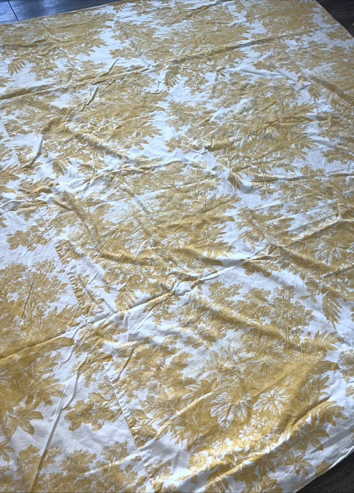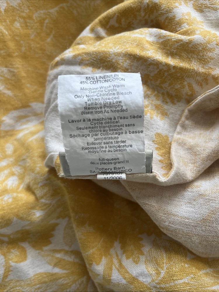POTTERY BARN Matine Toile Duvet Cover Size: Full/Queen Marigold Yellow All over Toile Design Double Sided Print - Bottom Button Closure CONDITION: Pre-owned - Great Clean Condition Not Stains or Holes *Please look at all Pictures as they are part of the Description* Please Ask any Questions, I will try and answer as quick as possible Please check out my other listings - New I tems are listed daily! Add me to your favorite Sellers list for quick Access to new listings Quick Shipping - items are shipped day of payment, latest day after Thank you