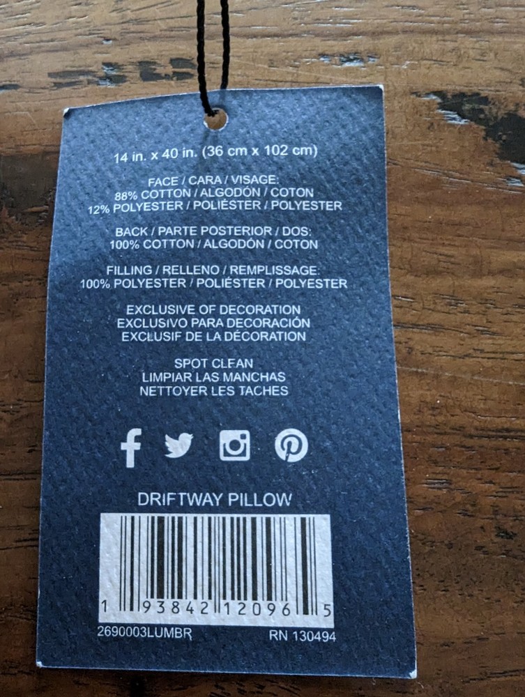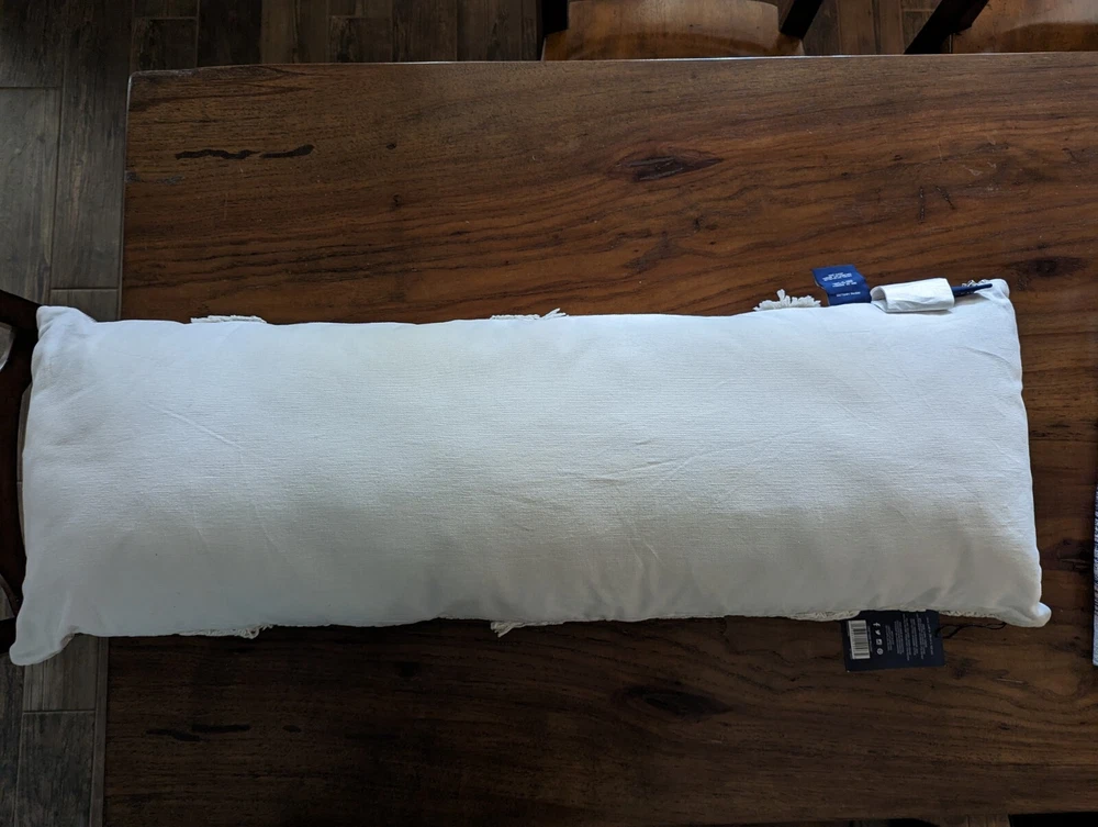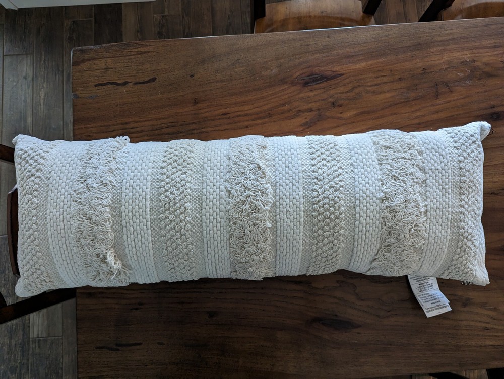 POTTERY BARN Mazzi Handloomed Lumbar Pillow - White - NEW! Expertly crafted of 88% cotton and 12% polyester. Insert included. Yarn-dyed fiber has incredibly rich color that holds its vibrancy over time. Overall: 14" w x 40" l Spot Clean. US SHIPPED ONLY - FREE!