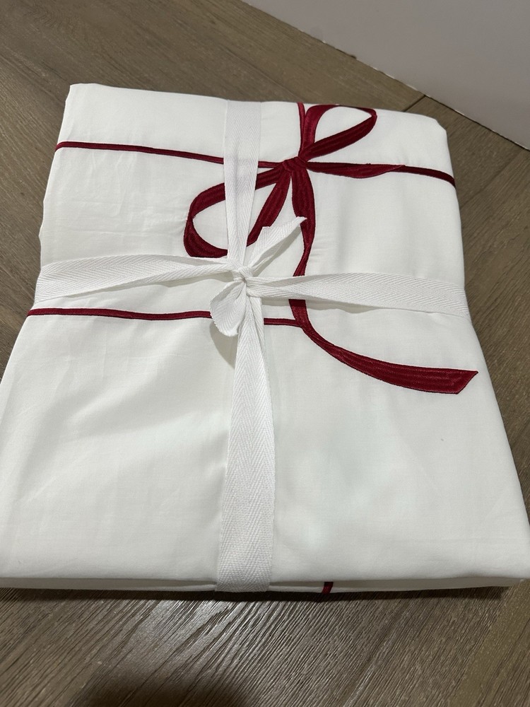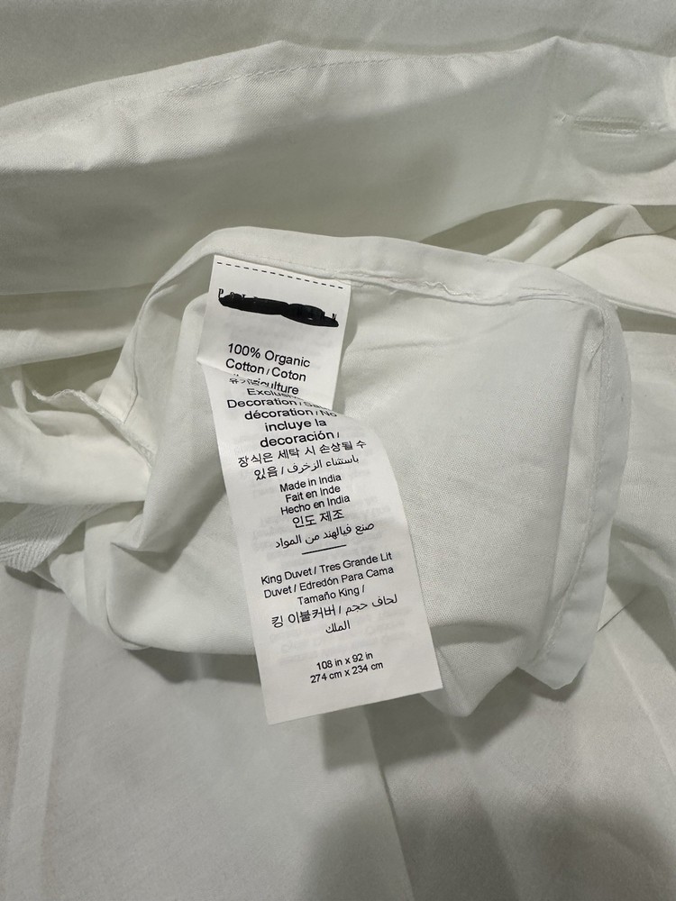 one pottery barn monique lhuillier nell embroidered duvet cover in a king/cal king size unwashed/unused. attached tags have been marked out as shown in the photo.