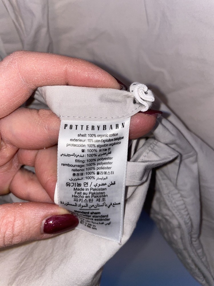 POTTERY BARN Organic Cotton Padded Beige Single Queen Sham Textured Pattern. Has a tiny dark stain on the back. See pic....