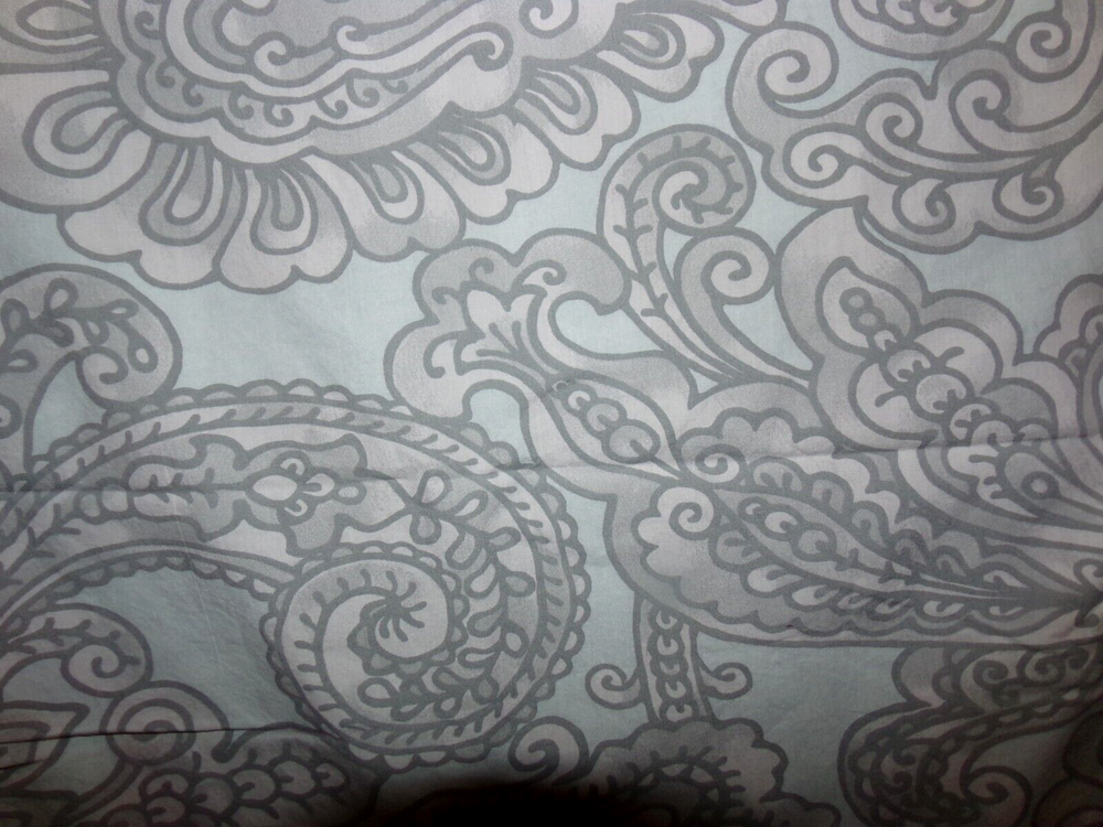POTTERY BARN PAISLEY LIGHT BLUE GRAY 3PC FULL/QUEEN DUVET SET.SET INCLUDES: 1 FULL/QUEEN DUVET COVER SAME PATTERN ON BOTH SIDES 2 MATCHING STANDARD SIZE PILLOW SHAMS...