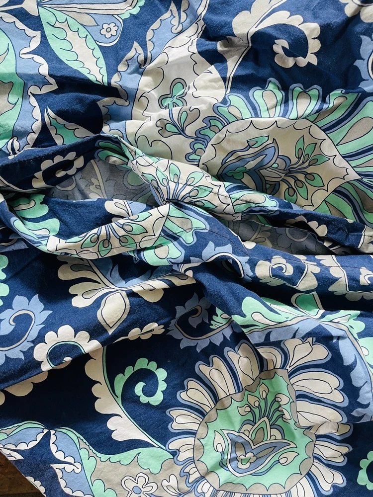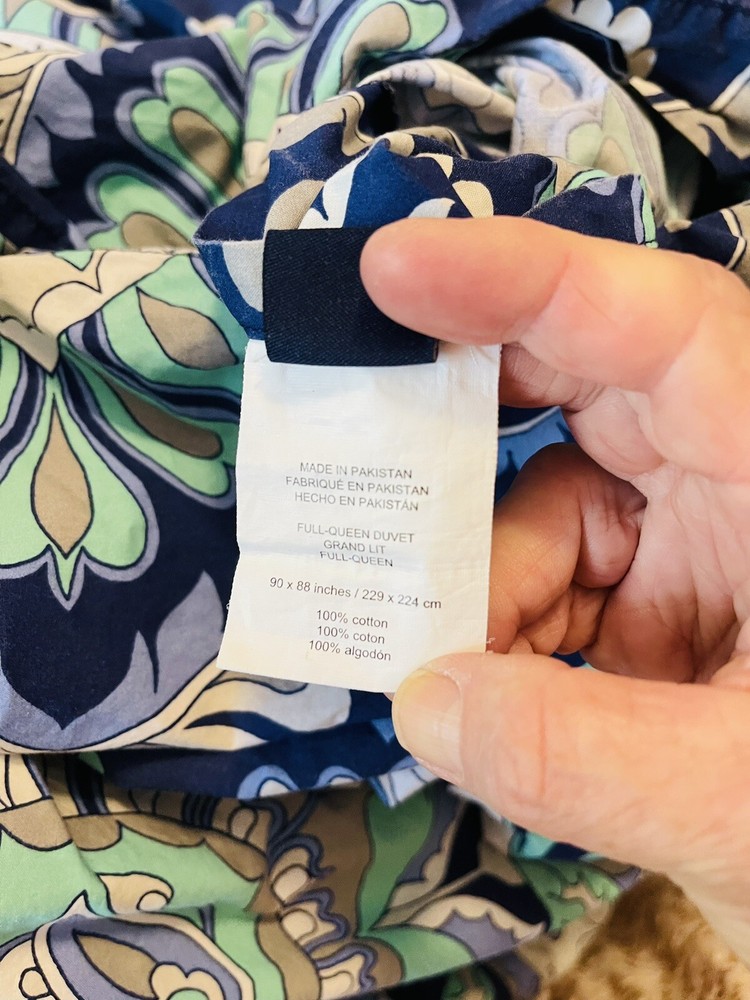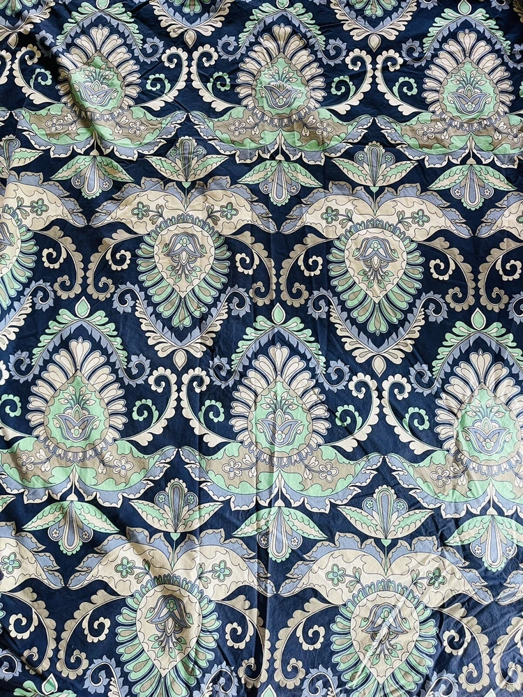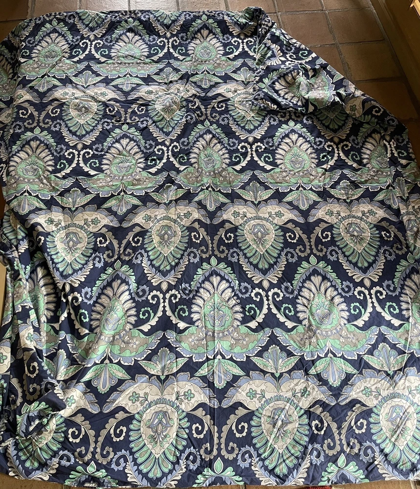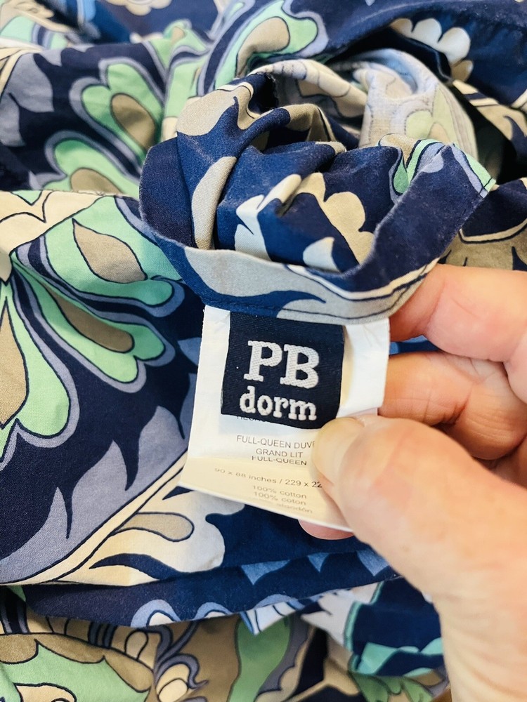 POTTERY BARN PB DORM Deco Medallion FULL QUEEN DUVET COVER Blue Aqua Paisley Pre-owned used condition. Beautiful, vibrant colors. Item well cared for, gently used, but with tiny pin holes in one spot (see last photo marked) - very hard to notice. Otherwise, normal wear for age and use. See all photos as additional part of the description. Sold AS IS. See "Item Specifics" above for all descriptive information. I am happy to answer any questions and provide additional information and photos prior to purchasing. Visit my store for similar listings and duvet inserts, I am happy to combine shipping when possible. I recycle shipping materials.