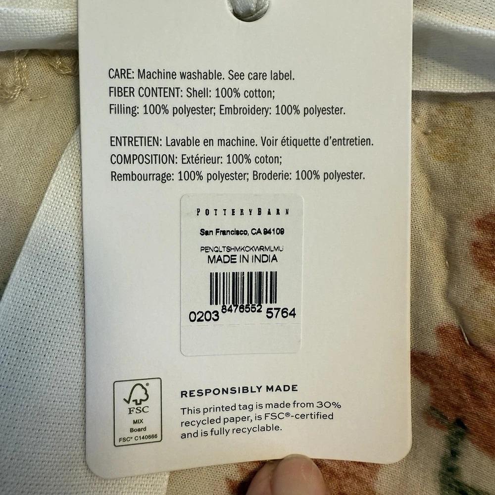 Construction Made from 100% Cotton with 100% Polyester fill. Digitally printed artwork is enhanced with light embroidery. Reverses to solid Ivory. Sham features an envelope closure. Ethically handcrafted. Care Machine wash in warm water; gentle cycle. Only non-chlorine bleach when needed. Tumble dry on low heat; remove promptly. Warm iron as needed. Shipping & handling: We ship same or next day. Large comforters & quilts are vacuum packed with a reusable storage bag to save shipping cost and preserve the item. Questions: Please reach out. We respond very quickly. We strive for 5-star service in our product quality, shipping speed & customer service. We know you have many choices on eBay and appreciate that you have chosen to shop with us. Zoe's Castle | eBay Stores