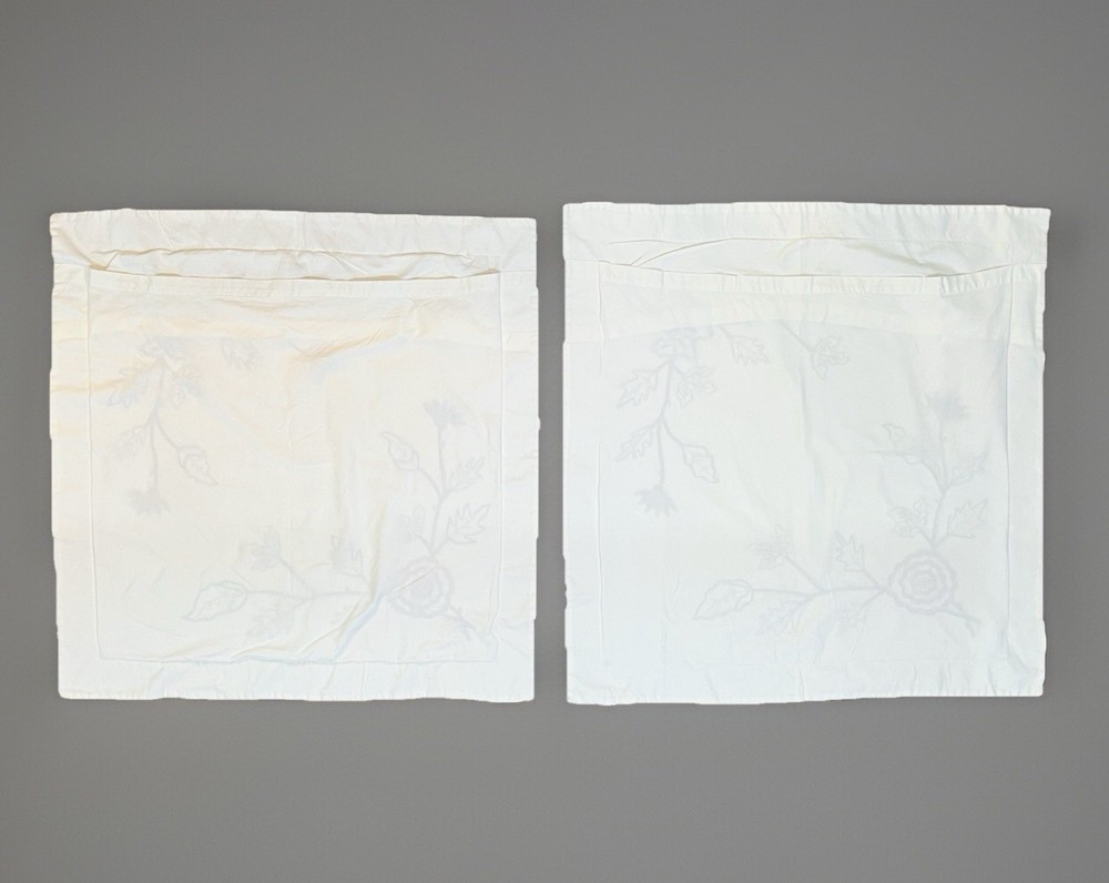 ***two minor spots near edge of one pillowcase. This pillowcase may run slightly smaller (one inch or less) than the other Stored in a smoke free home Please be sure that your shipping address is correct. No delayed shipment requests please If you have any questions or would like more photos, please ask ~ We would like our customers to be informed and pleased with all purchases. If you have any concerns with your purchase, please contact us as we will resolve all issues as soon as possible. We are confident in our products and service