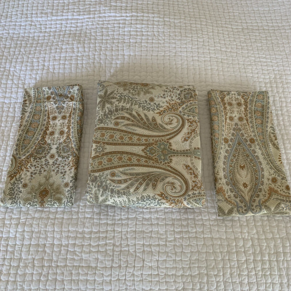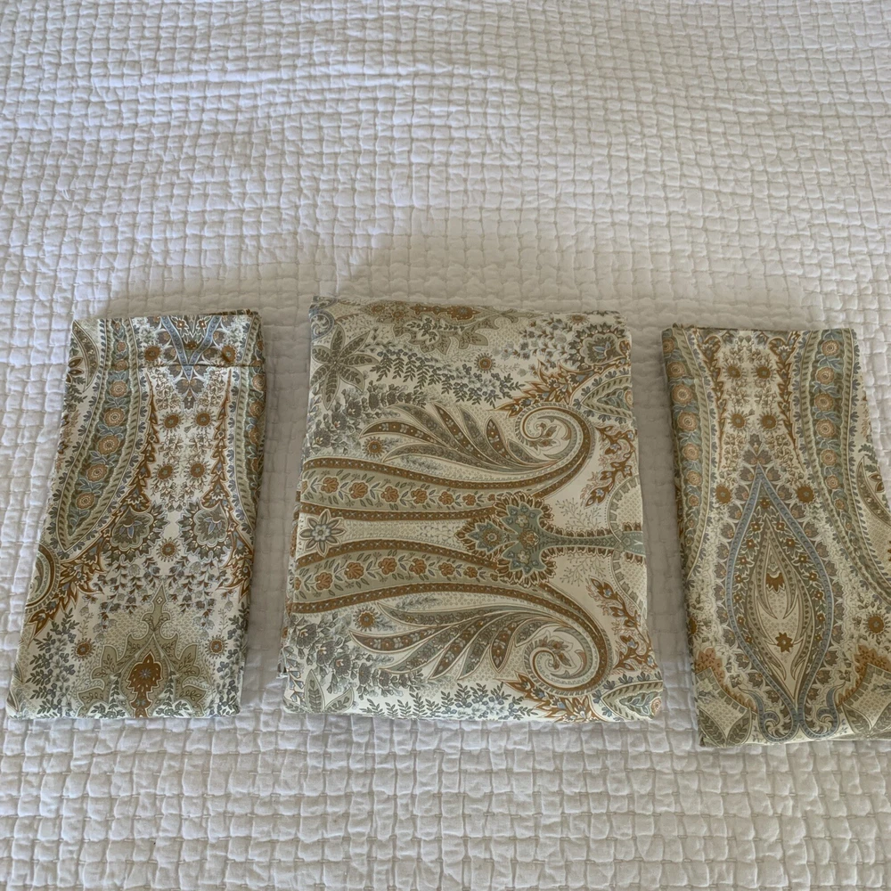Nice pre owned condition. No stains, rips or holes. Freshly laundered. Smoke free home. Beautiful fall colors. Sateen finish Includes: 1 /full/Queen Duvet 2 Euro Shams Always happy to Combine Shipping. Check out my other listings for more wonderful Pottery Barn items.