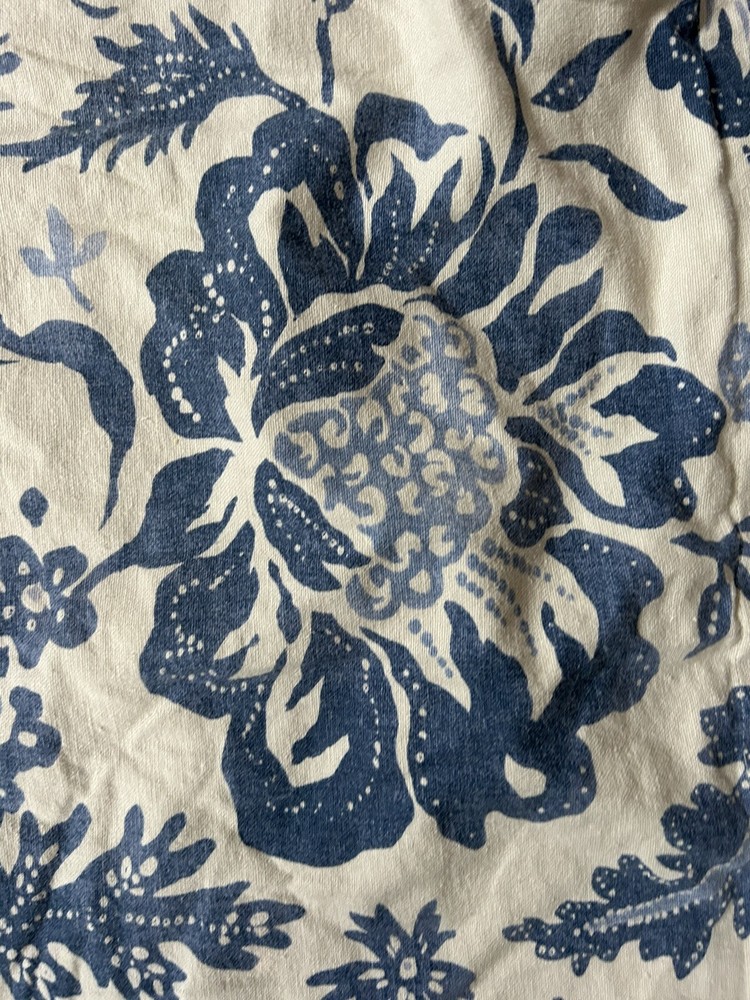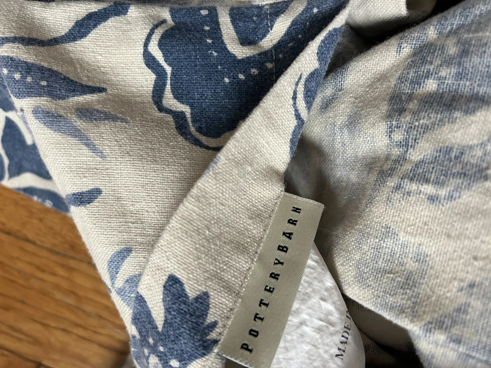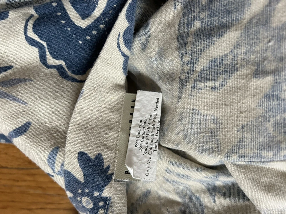 Add a touch of elegance to your bedroom with this beautiful Pottery Barn Palampore Blue Cream Linen Blend Euro Sham. The pillow sham features a square shape with an envelope closure type, making it easy to use and machine washable. The blue color and intricate Palampore design add a classic charm to your bedding. The pillow sham is made of high-quality linen blend material and measures 30” by 32”.