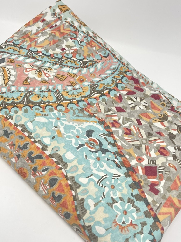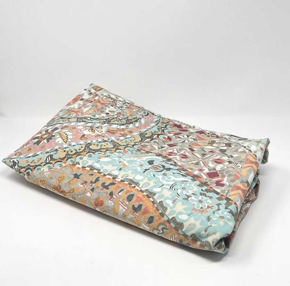 This duvet cover is a dream! The vibrant aqua and orange paisley design adds a gorgeous pop of color, while the organic cotton feels so soft and breathable. It’s in perfect preowned condition—no stains, rips, or wear. Great for refreshing a guest room or master bedroom with boho charm. Love the quality and how easy it is to care for!