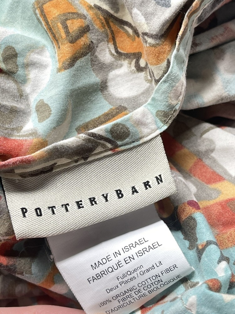 POTTERY BARN Paloma Paisley Organic Cotton Queen Full Duvet Cover Aqua Orange In excellent preowned condition. Used in guest bedroom. No flaws found. Please see pics.