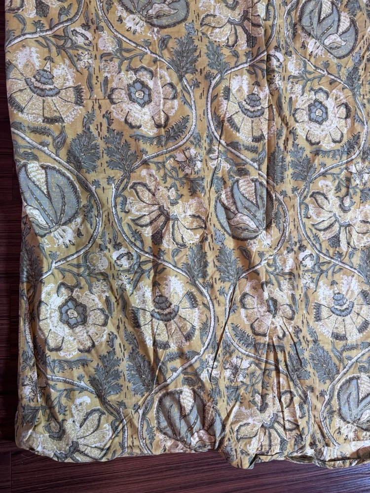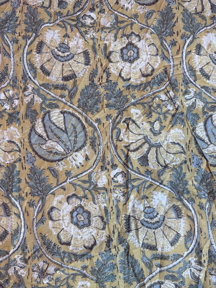 The Pottery Barn Penelope Palampore Full/Queen Duvet & 2 Standard Shams Set in Mustard Yellow offers a charming floral and scroll design ideal for a cottage core or French country themed bedroom. Made from linen like 100% cotton, this set includes a F/Q duvet cover and two standard shams adorned with a classic floral pattern. With an elegant closure of buttons, this set exudes a touch of luxury and bohemian flair, perfect for creating a cozy and inviting ambiance in any bedroom. ⭐️No rips holes or stains. 82” X 89” approximately. Reversible and a discontinued print from 2011.