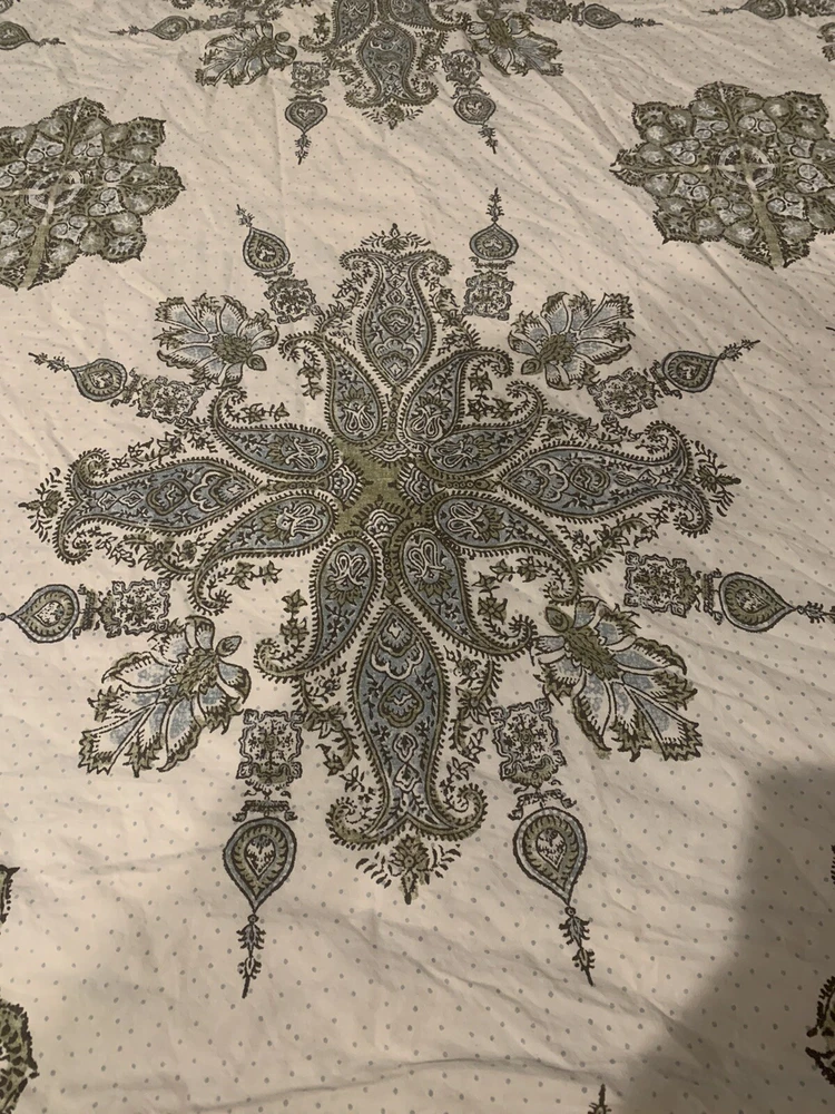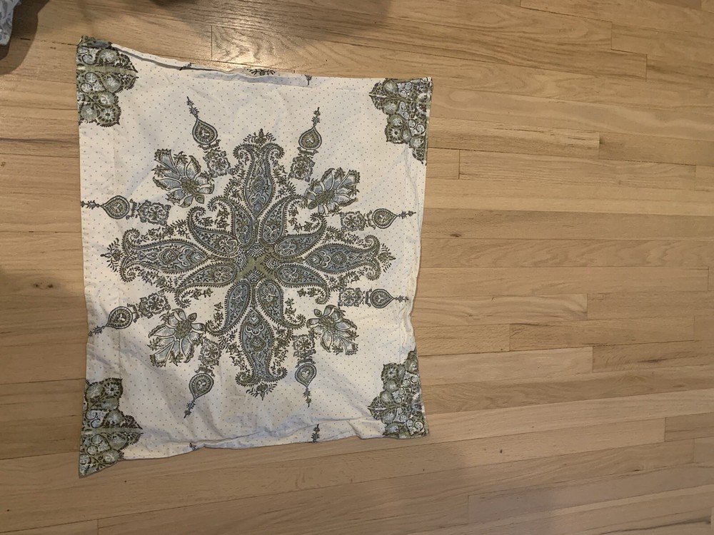 POTTERY BARN QUEEN SIZE DUVET COVER 1 SHAM BEIGE, GREY, AQUA, SAGE. EXCELLENT PRE-OWNED CONDITION.