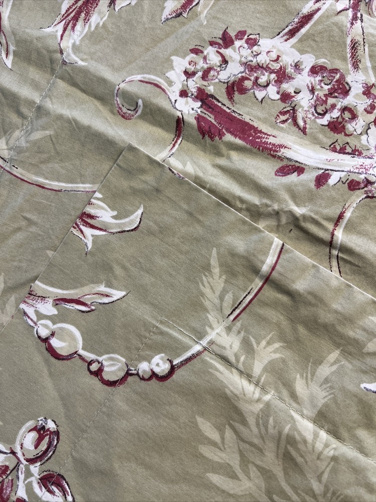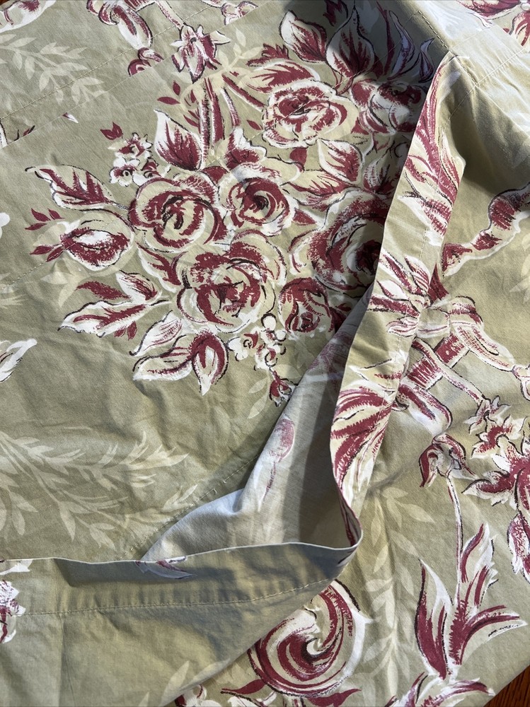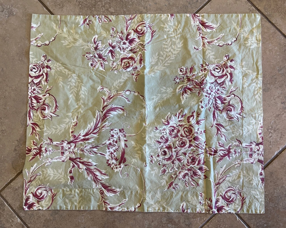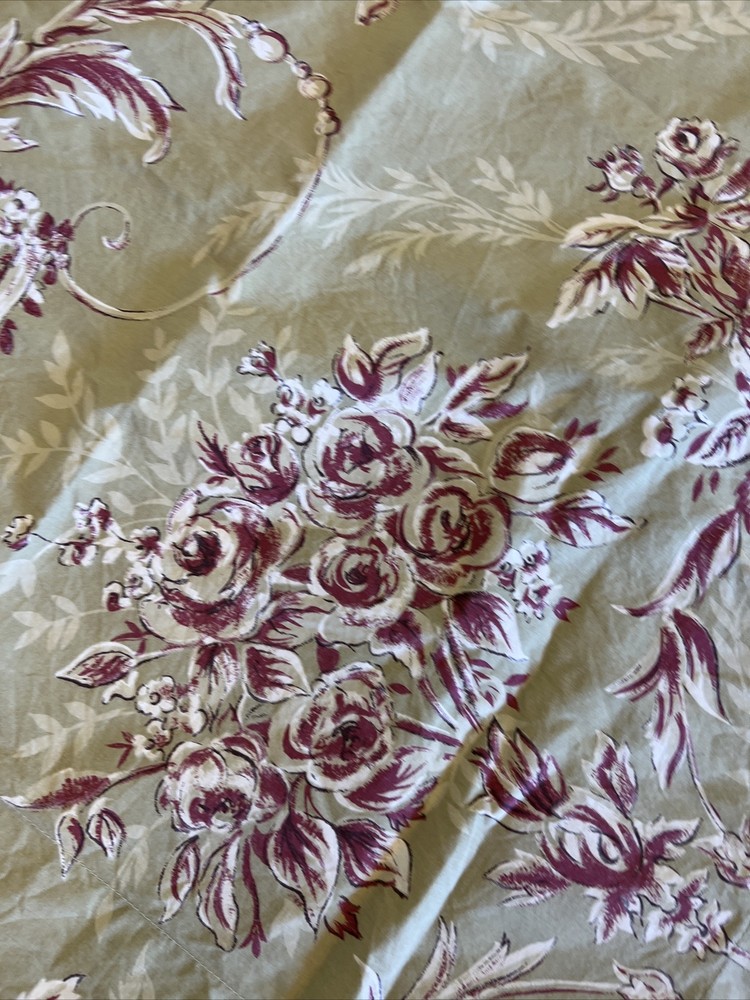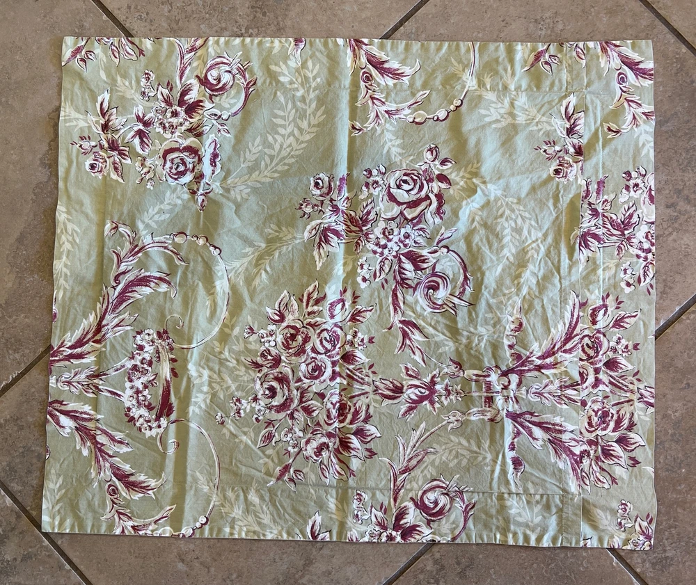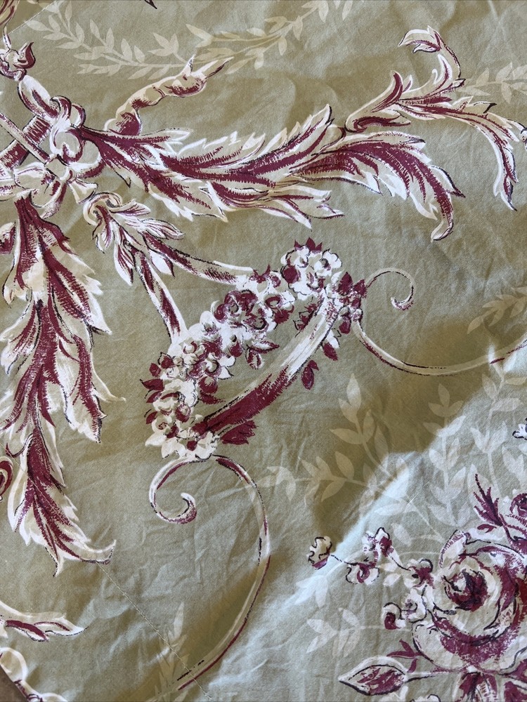 Very soft cotton. Great condition with no stains or damage. No pulled threads. These are a burgundy floral scroll design on a tan/green backing. You can mix these in with other patterns and they will add a nice contrast. Standard size set of two. Smoke and pet free home. Thank you!