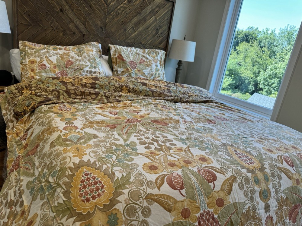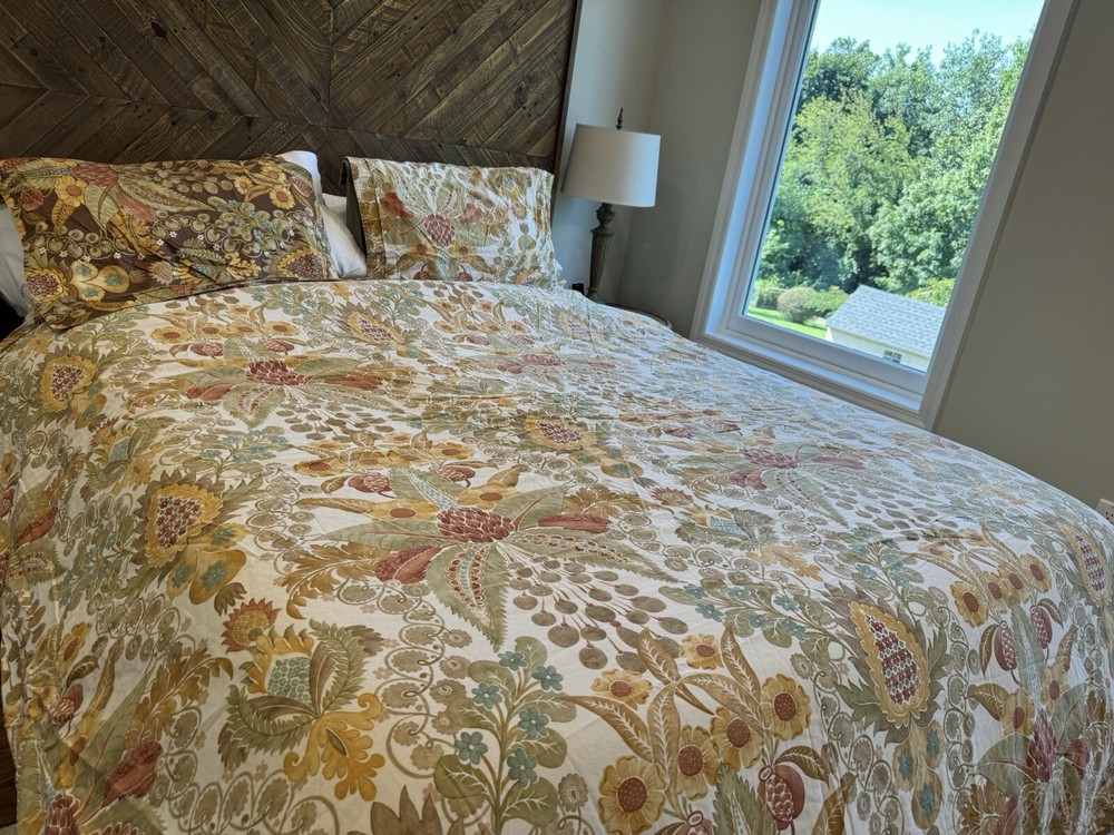 POTTERY BARN REVERSIBLE CAESAREA FULL / QUEEN DUVET & One STANDARD SHAMS one Euro sham .it (two different size see pictures) very good condition .