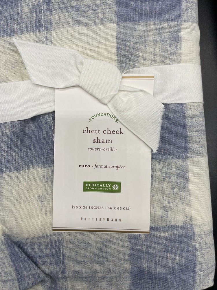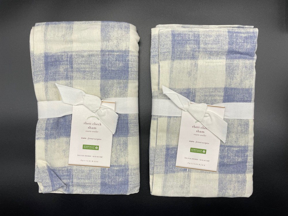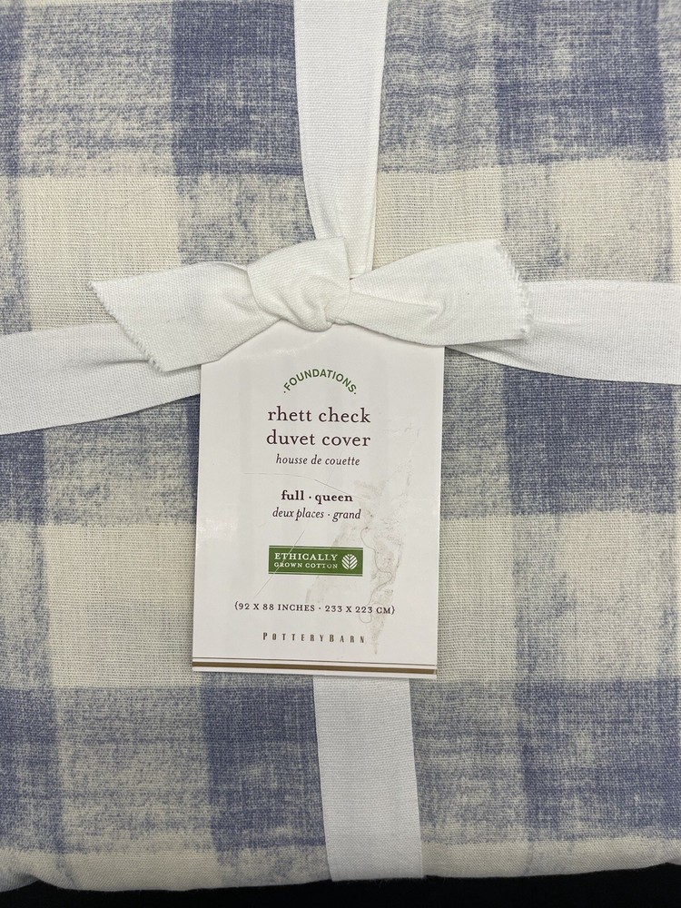 Pottery Barn Rhett Check Duvet & Shams Duvet: Full / Queen 2 Euro Shams Color: Blue Brand new, mint condition, with tags, smoke free & pet free home. Please visit their website for more detailed photos of the color Please make note of the different tag on the duvet and 1 of the shams. Retail: $280