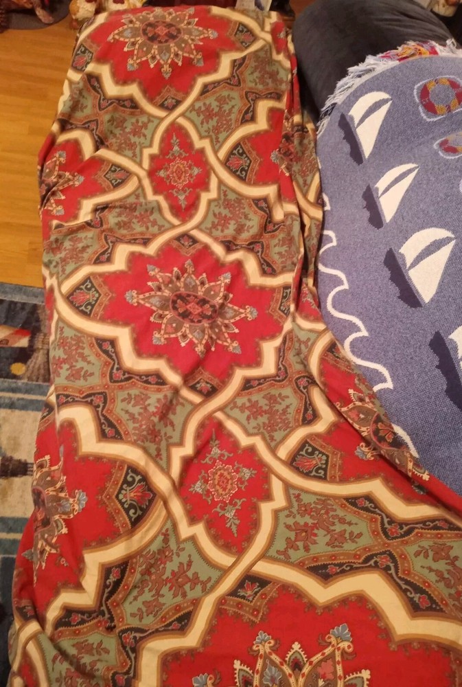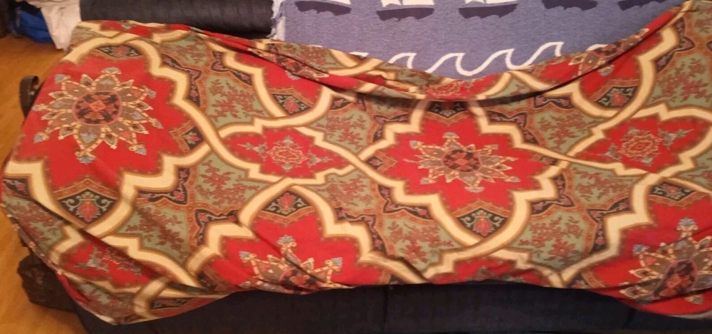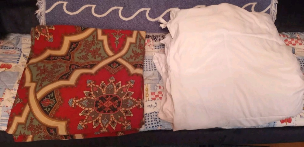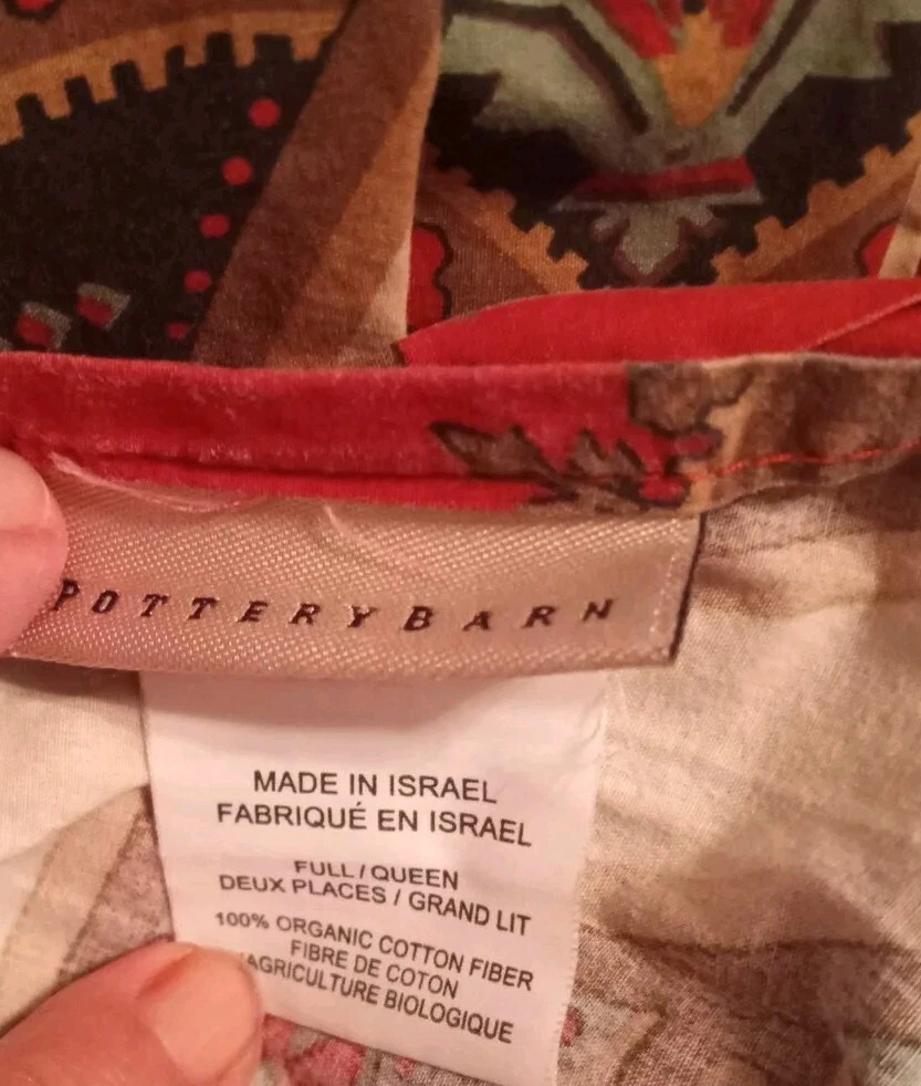 Pottery Barn Full Queen Duvet Cover in Ashton Medallion. Red Multicolor. 100% Organic Cotton Percale. Button closure. Cathay Home Duvet Insert. There is a small tear and a spot on the cover (see pictures 5, 6, 7). Insert is white, 100% Polyester. A tile work mosaic of interlocking shapes in rich hues brings depth to this bedding’s design. Made of 100% organic cotton; organic cotton is grown without the use of toxic and persistent pesticides and synthetic fertilizers. 200-thread count. Duvet cover reverses to self. Duvet cover has interior ties and a hidden button closure. Machine wash. No Returns Accepted.
