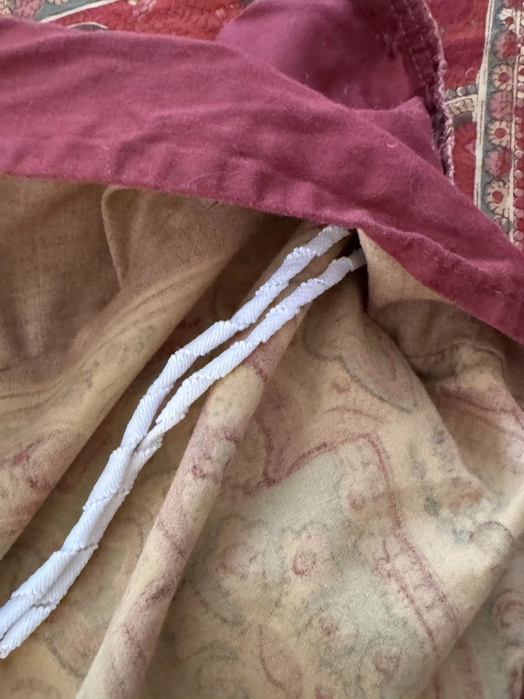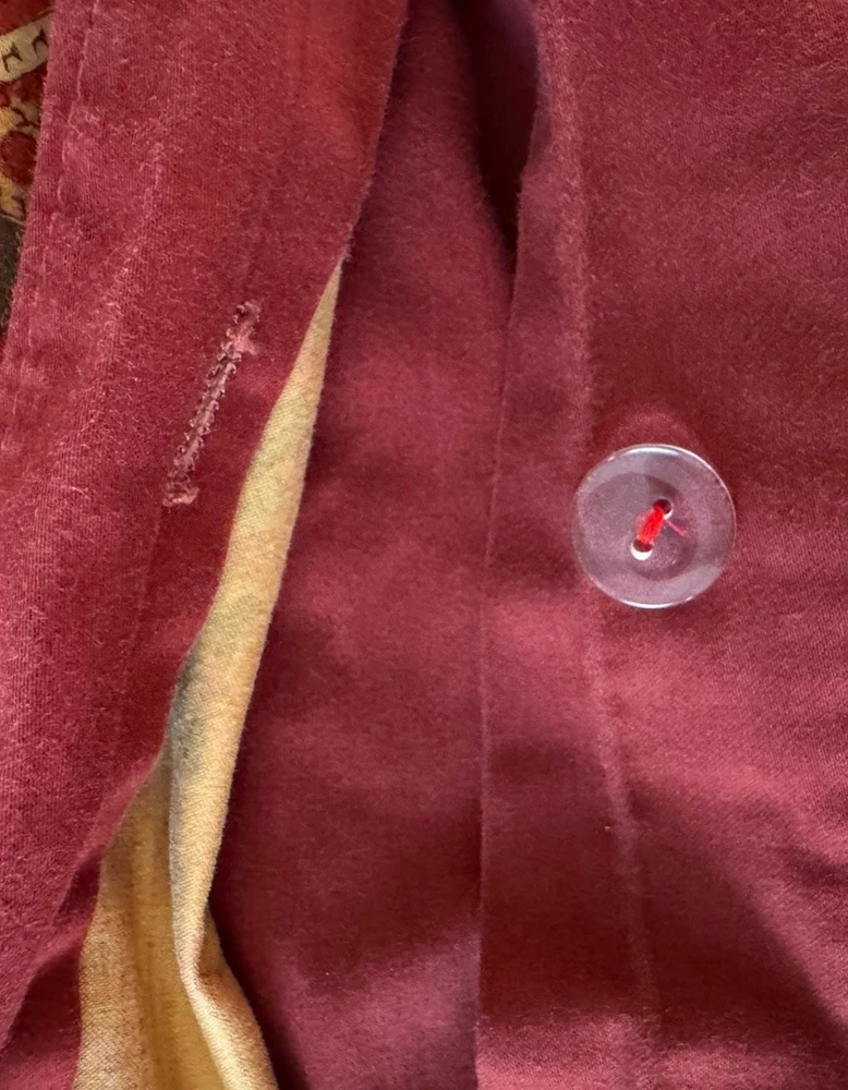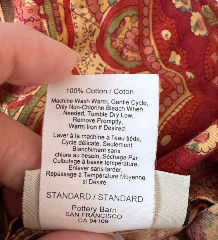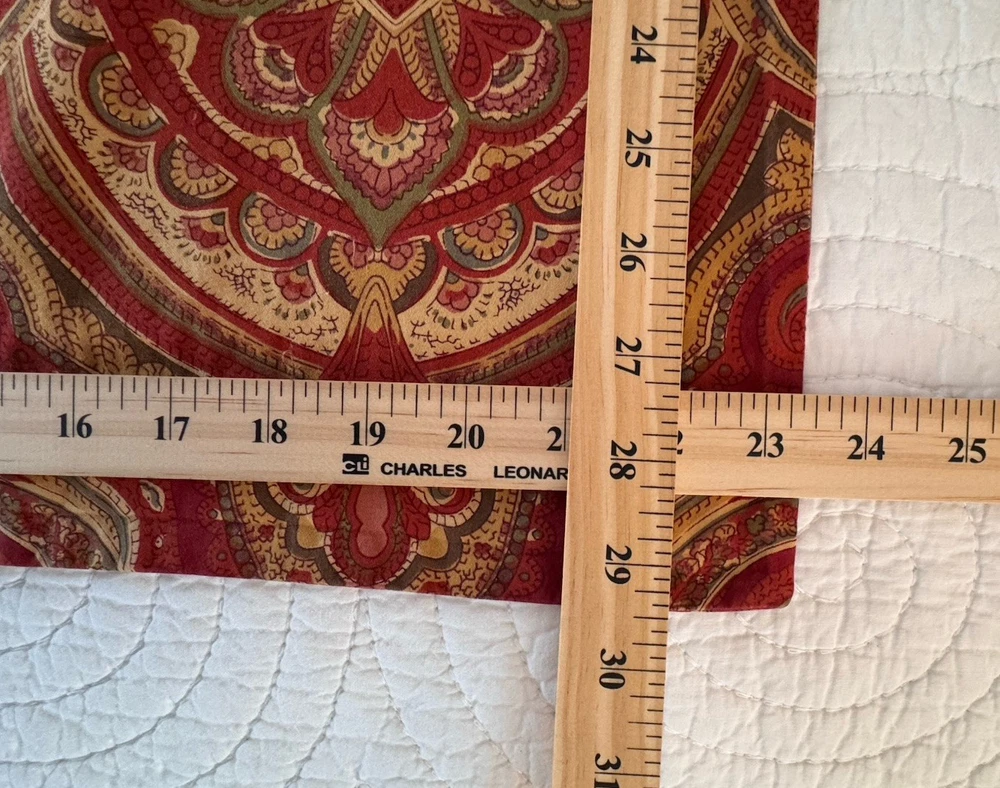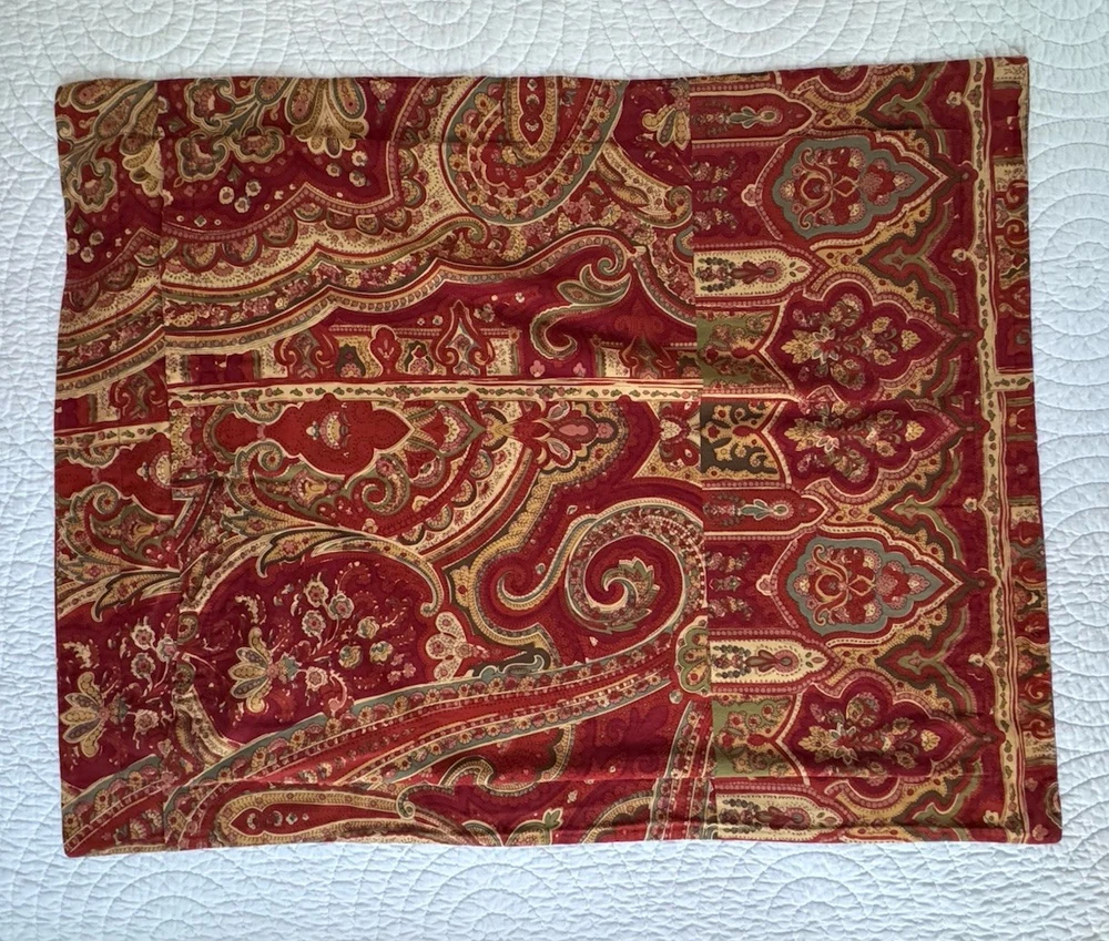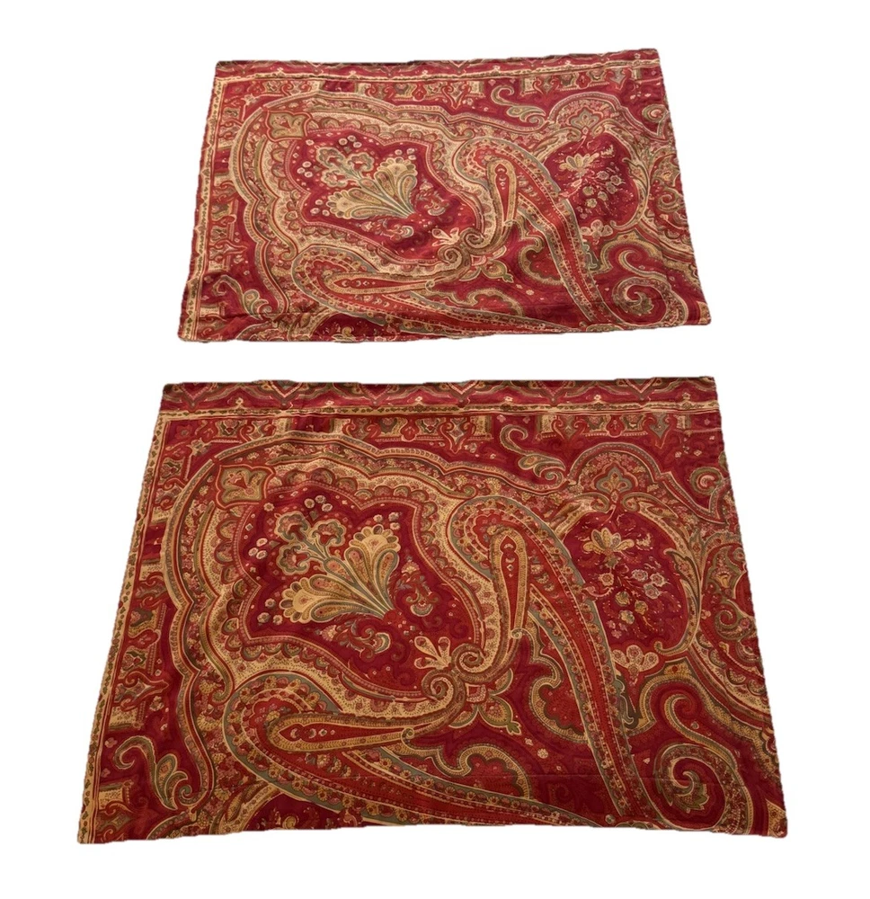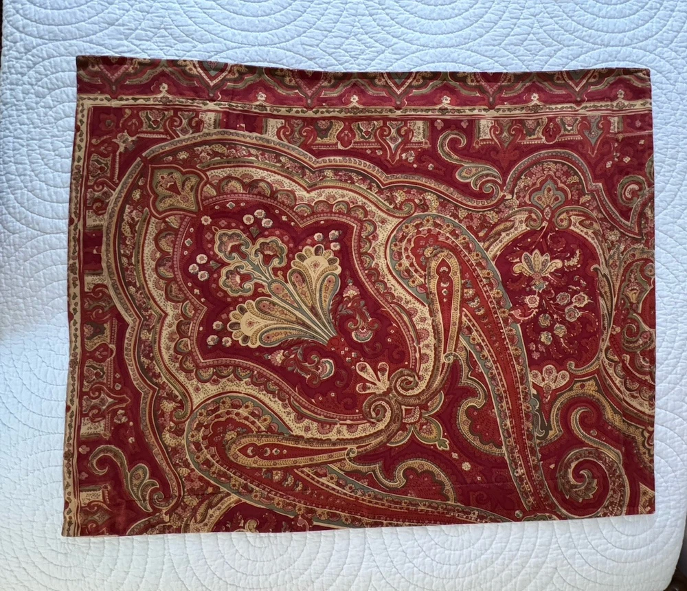 POTTERY BARN Red Tan Green Paisley Talia FULL/QUEEN Duvet Cover 2 Shams 3pc Set. Measurements: F/Q Duvet L 88” W 88”. Standard Shams L 29.5” W 23”. Duvet has buttons and ties to secure your comforter insert. One button replaced as it was missing. Shams have multiple snaps to secure your pillow insert. Pre-owned good condition showing minor wear. One buttonhole has a slight tear and a new replaced missing button (see enhanced images). Item has been laundered and ready for immediate use. Please see all pictures to review the age, use and condition of the item as this is part of the description. Pictures on many phones/computers do not display the colors or the tone the same as the original images; if you have questions regarding this please contact me. Ships within 3 business days.