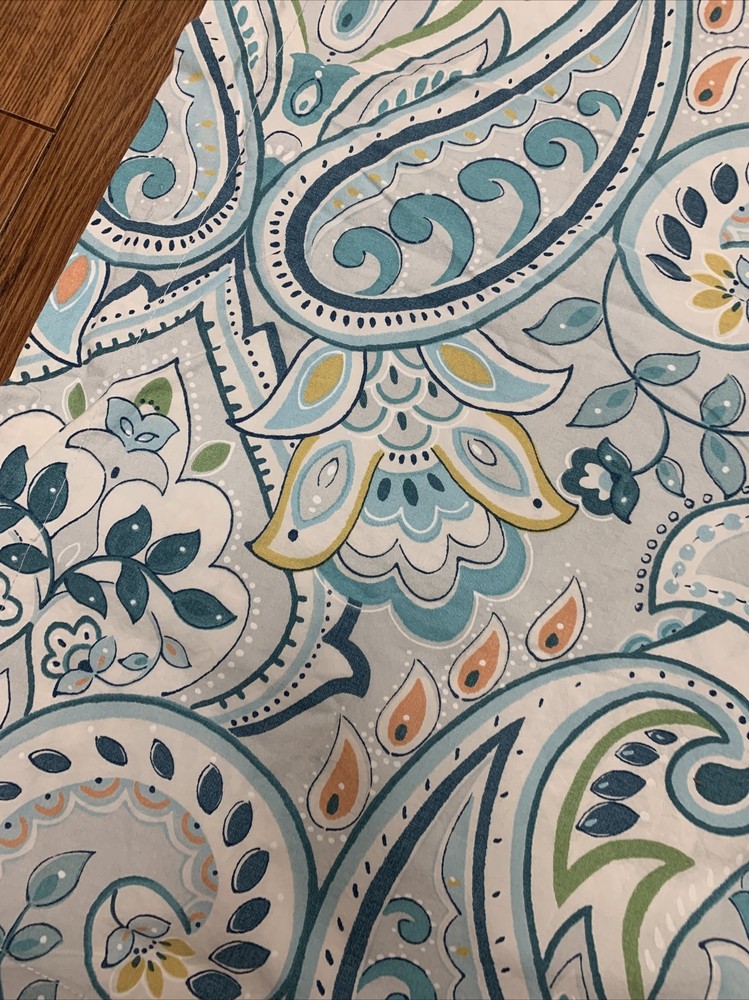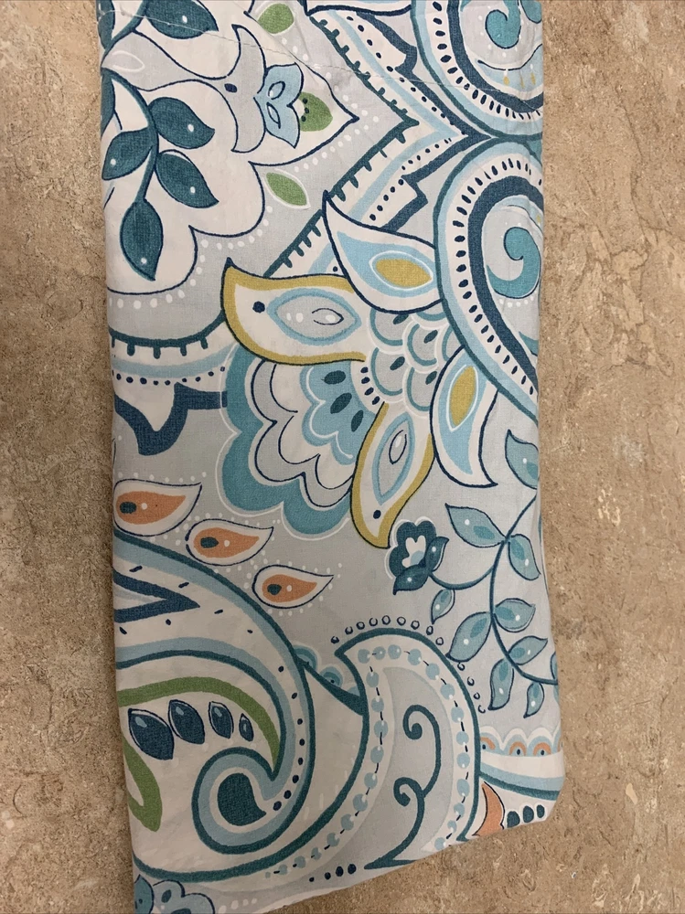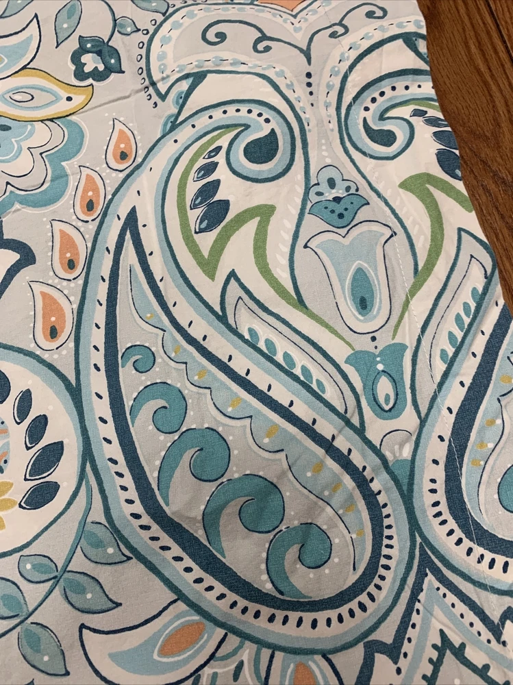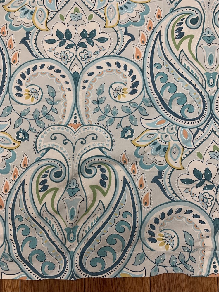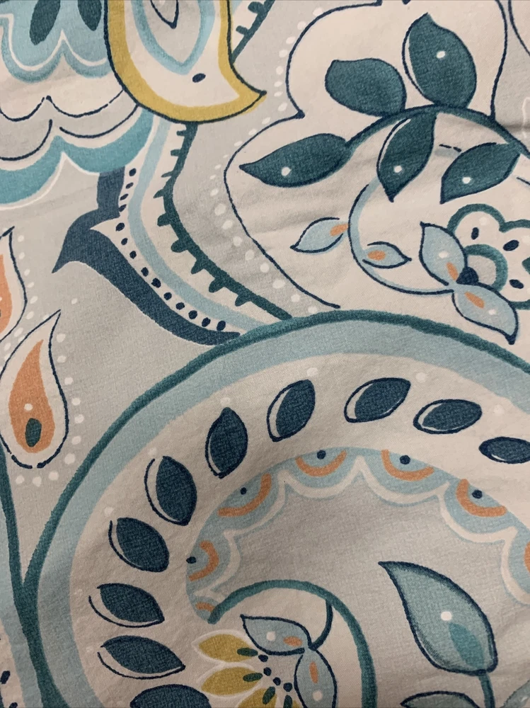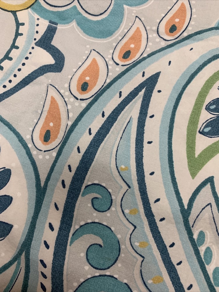 POTTERY BARN SHAM 1 EURO SIZE 100% ORGANIC COTTON FIBER BLUES.....LIGHT AND DARKER WITH TURQUOISE PEACH GOLD AND GREEN....PAISLEY FLORAL WONDERFUL CONDITION....PERFECT CHARM FOR YOUR BED!...