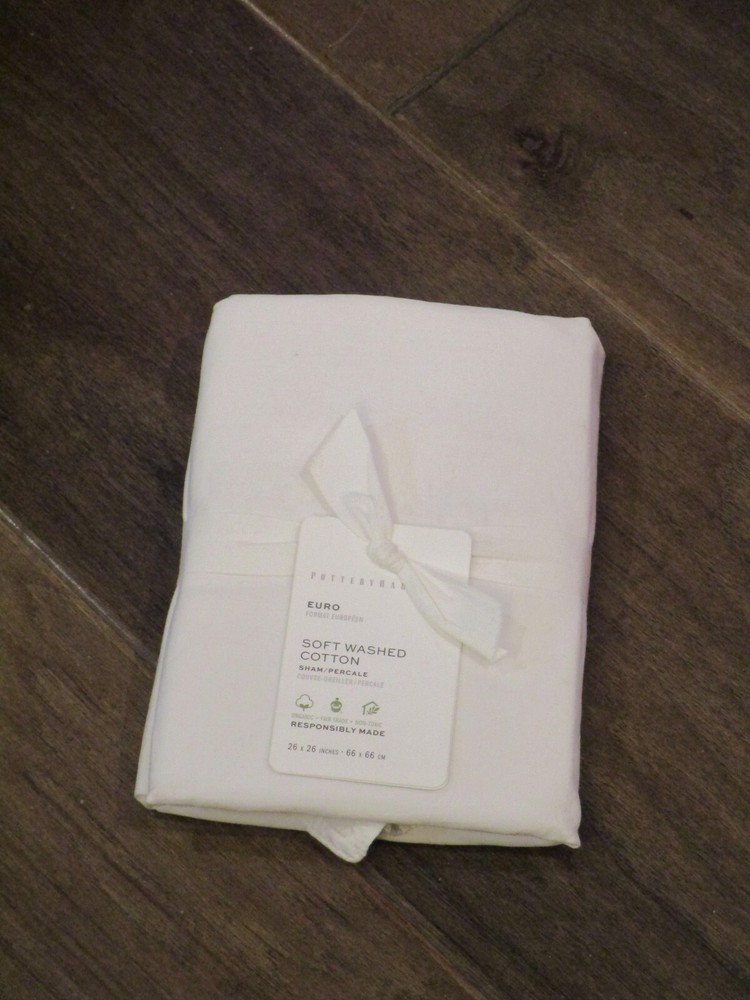 You are looking at a brand new POTTERY BARN SPENCER WASHED COTTON WHITE EURO PILLOW SHAM ! Brand new in original packaging. Check out my other domestics and great items in my store. PAYMENT: Buyer must pay within three days of purchase via PayPal. SHIPPING: I will get your item(s) in the mail within one business day following payment. We pride ourselves in getting your merchandise to you quickly! At this time we are not able to ship internationally. CUSTOMER SATISFACTION: We work extremely hard at keeping our 100% feedback rating and we do that by maintaining excellent communication with our customers. If there is a reason for which you feel you cannot rate us at 5 or leave us positive feedback, please contact us so that we have the opportunity to make every transaction a great one! RETURNS: Returns need to be in original packaging in new condition as it was shipped. A 20% restocking fee will be charged for all returns.