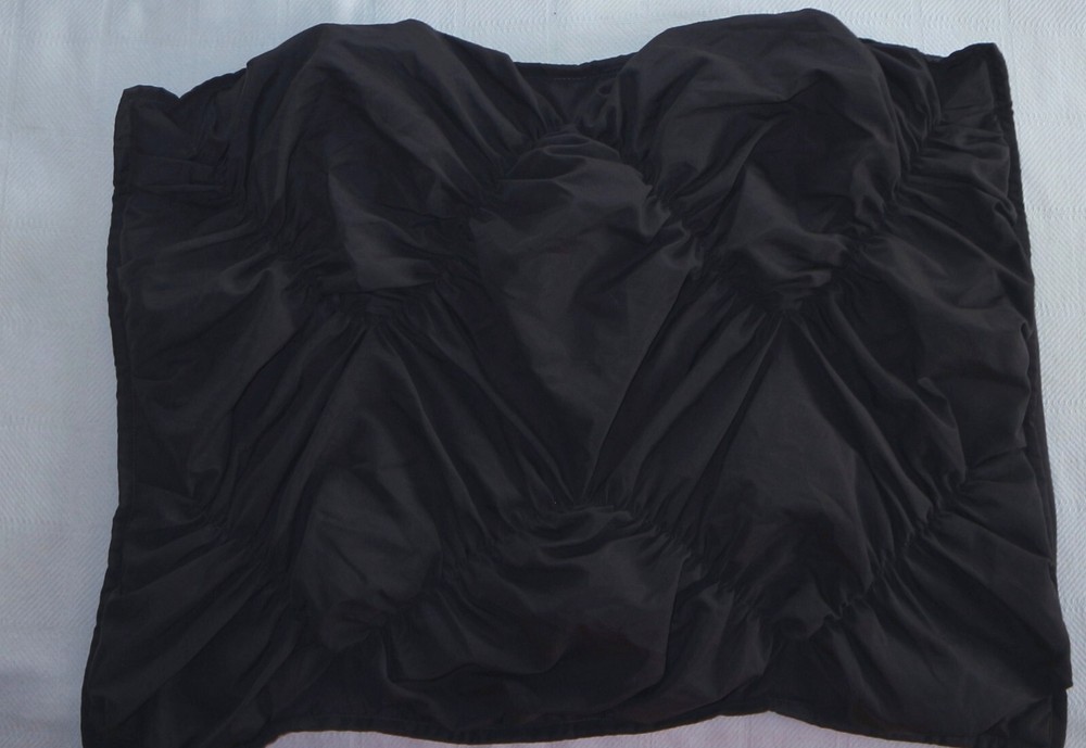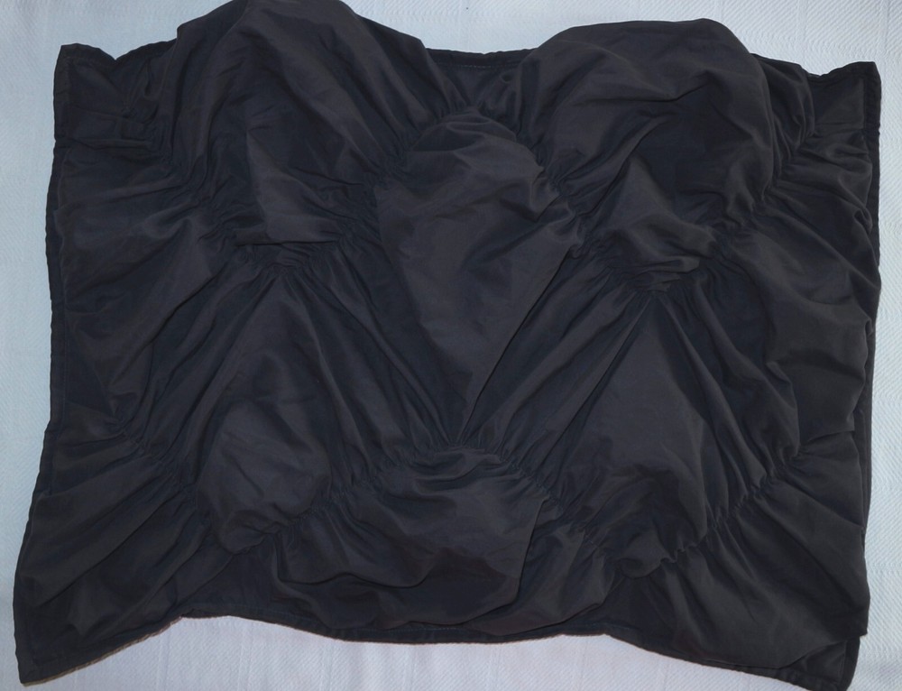 100% polyester. Envelope back. APPROXIMATE MEASUREMENTS 20 inches X 26 inches CONDITION ~~~EXCELLENT CONDITION (previously worn with minimal wear or fading) TERMS Your satisfaction is our goal. We make every effort to cite any specific flaws*, but if we should unintentionally miss one, or If the condition of the item you receive does not meet your expectations we will gladly refund your purchase price and shipping. *Flaws might include spots, stains, holes, excessive pilling, tears, fabric irregularities, or problems with buttons, zippers, snaps, etc. Due to the quantity of different washes and dye techniques (i.e. vintage wash, pre-washed, faded by design, etc.) available we do not generally attempt to determine the extent of fabric fading. All items are stored in a smoke and pet free facility. In general, the prices of our items are firm. Although we're aware that many buyers and sellers enjoy the bartering involved in making offers and counteroffers, we prefer to follow Ebay's stated policy regarding offers made on items without a 'best offer' option. EBAY POLICY re: Making a Best Offer "If the Make Offer button does not appear in the listing, the seller is not interested in receiving offers and you should not try to contact this seller to negotiate price or terms. " Thank you for visiting Mulberry Cottage! spring23-25/ wren01