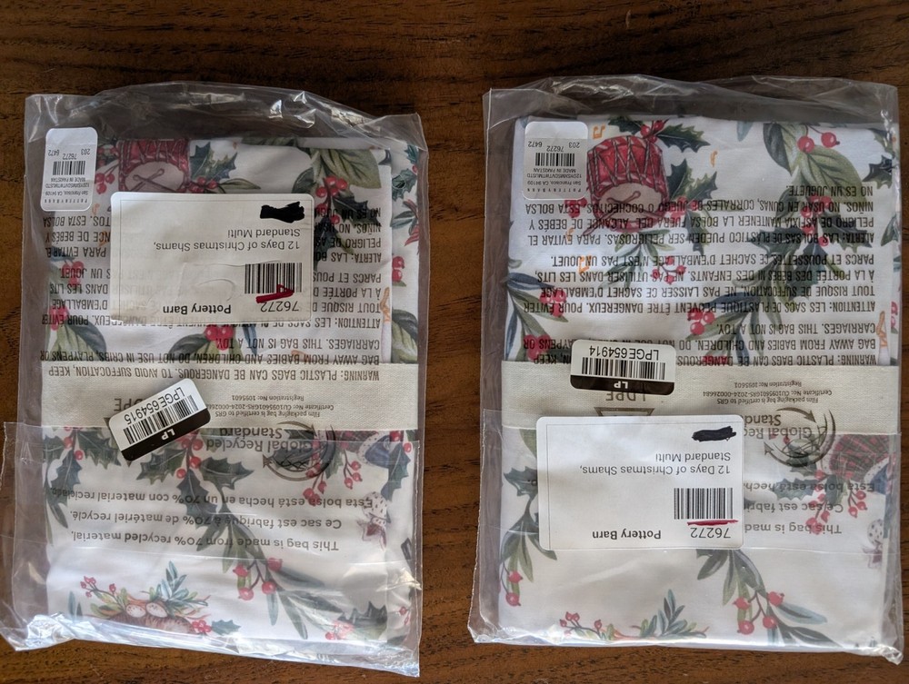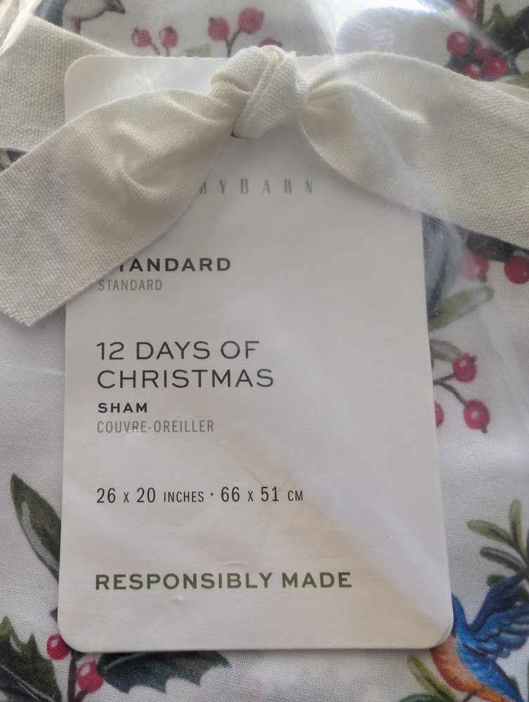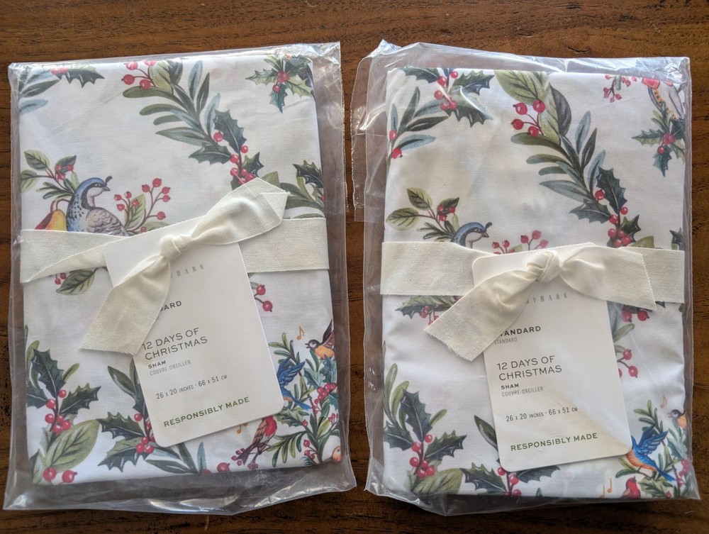 POTTERY BARN Set of 2 12 Days of Christmas Shams-Std-NWT Made from 100% cotton. Reverses to the same. Envelope closure. Standard Shams: 20" h x 26" w SHIPPED FREE!...
