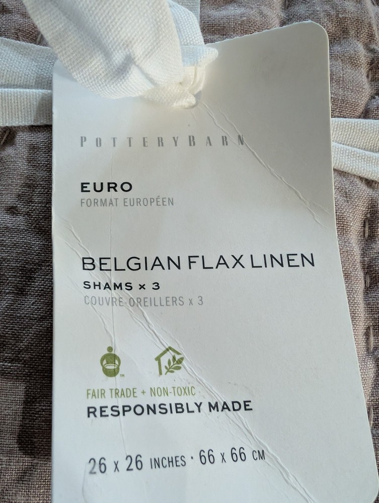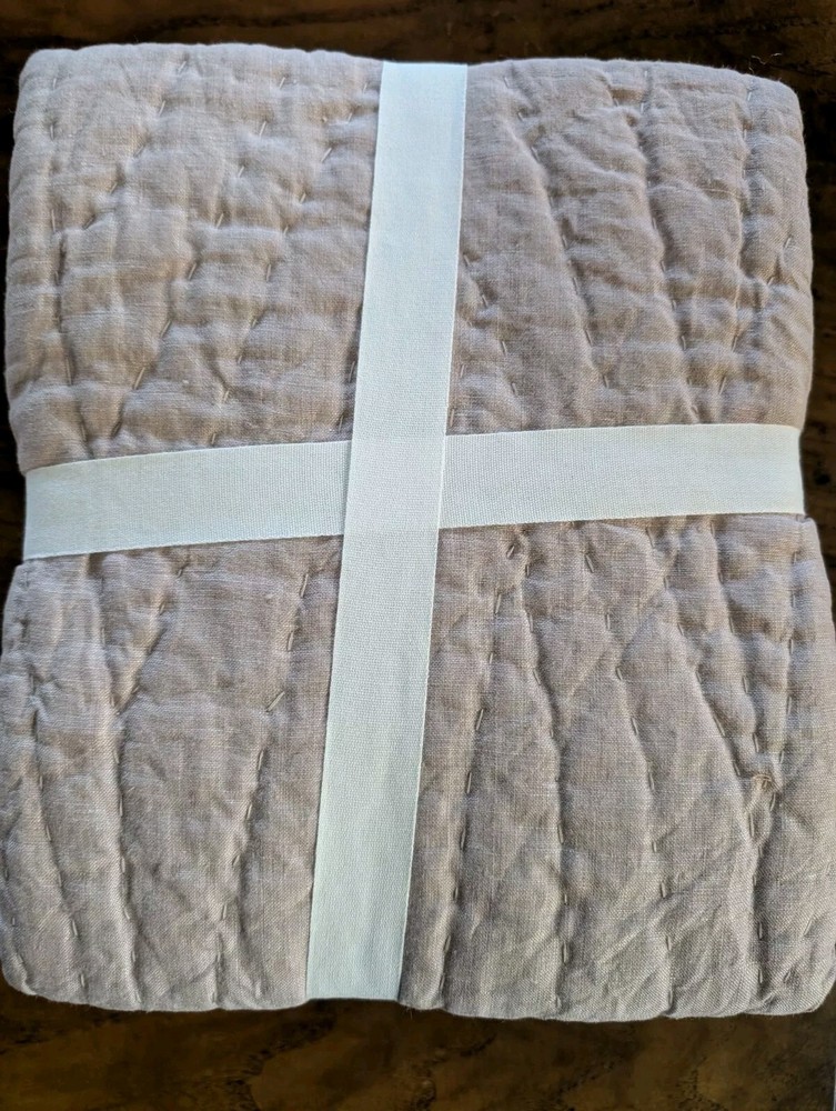 POTTERY BARN Handcrafted Cotton/Linen Quilted Sham-Smoky Quartz-Euro-NWT Hand-quilted of 55% cotton and 45% linen. Filled with 100% cotton batting. Yarn-dyed fiber has incredibly rich color that holds its vibrancy over time. Quilted sham has tie closure. Reverses to solid. Shams: 26" h x 26" w SHIPPED FREE!