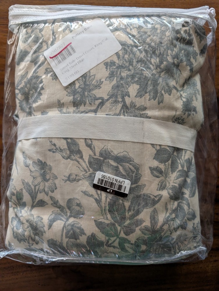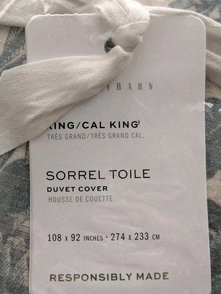 POTTERY BARN Sorrel Toile Duvet Cover-King/CKing-Steel Blue-NWT Made of 100% cotton, reverses to the same. Duvet features a hidden button closure with inner ties to keep insert in place. Insert sold s...