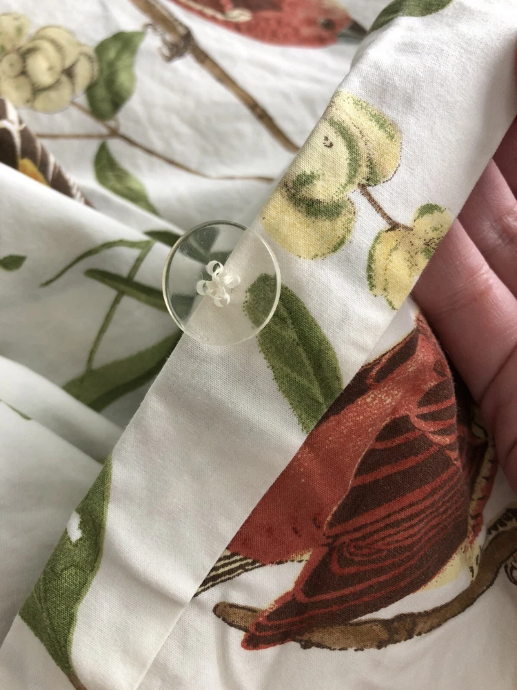 There is a coffee splatted stain near one of the edges that you may be able to get out with some TLC, but the set it is otherwise great pre owned condition. The set has been freshly laundered and comes from a smoke free home.