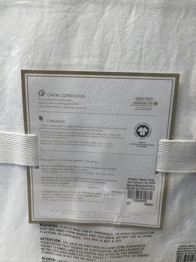 POTTERY BARN TEEN DUVET COVER FULL-QUEEN WHITE...