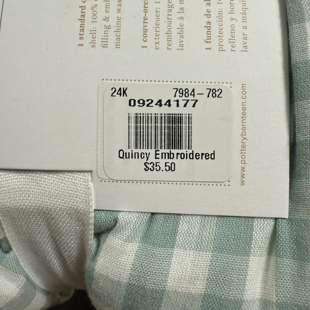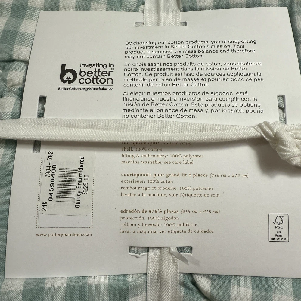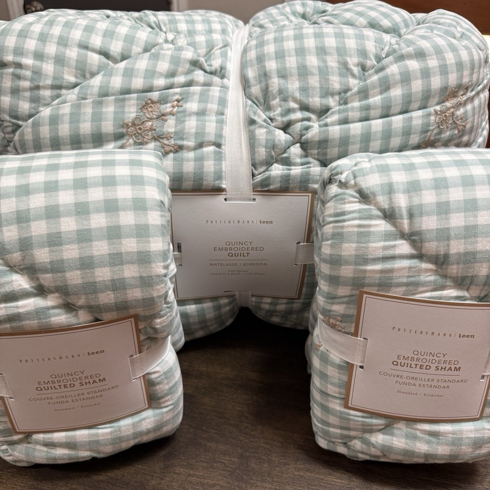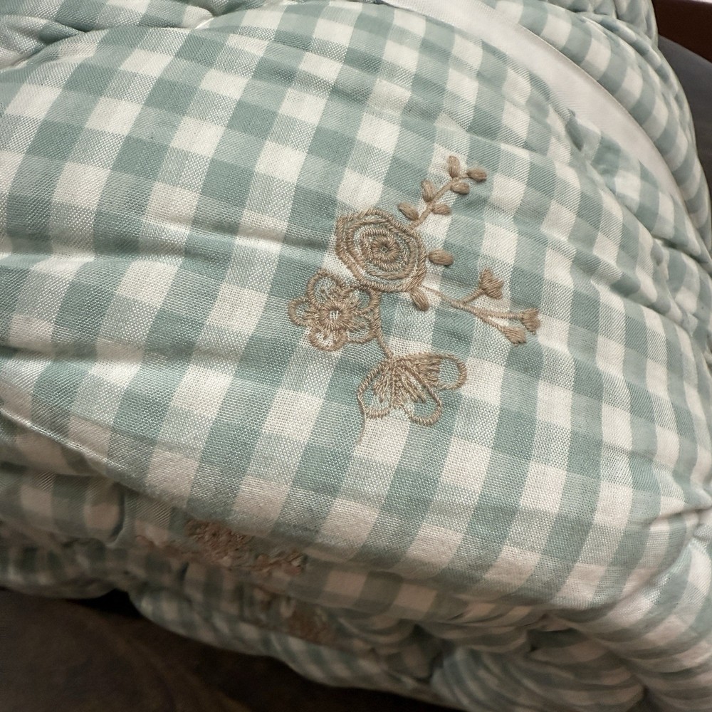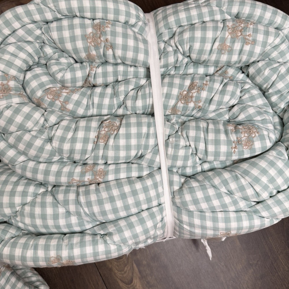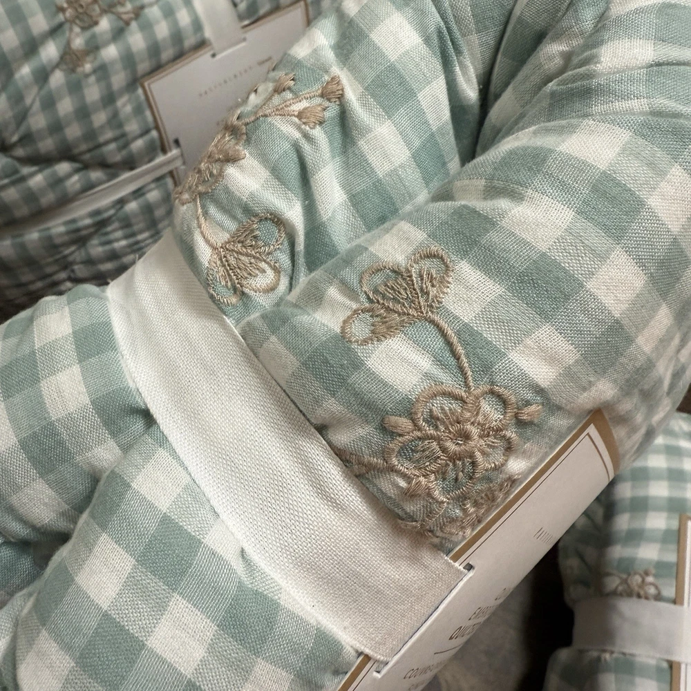 A soft-green, gingham pattern splashed with botanical accents creates our quilt’s charming country character. Tailored from soft, breathable cotton for a comfy night’s sleep, it’s stitched over lofty fill to add textural dimension and snuggly warmth. Pair with the matching shams for a coordinated look. By choosing our cotton products, you’re supporting our investment in Better Cotton’s mission. This product is sourced via mass balance and therefore may not contain Better Cotton. Learn more at bettercotton.org/massbalance. Made of 100% cotton. Yarn-dyed fibre has incredibly rich colour that holds its vibrancy over time. 100% polyester fill. Quilt and sham reverse to a solid colour. Quilted sham has an envelope closure. Single-sized quilt fits both standard single and single XL mattresses. Quilt, sham and sham inserts are sold separately. Machine wash. Quilt Full/Queen: 86" square Sham Standard: 26" wide x 20" high CARE AND MAINTENANCE Machine wash in warm water; gentle cycle. Only non-chlorine bleach when needed. Tumble dry on low heat. Warm iron as needed. Shipping & handling: We ship same or next day. Large comforters & quilts are vacuum packed with a reusable storage bag to save shipping cost and preserve the item. Questions: Please reach out. We respond very quickly. We strive for 5-star service in our product quality, shipping speed & customer service. We know you have many choices on eBay and appreciate that you have chosen to shop with us. Zoe's Castle | eBay Stores