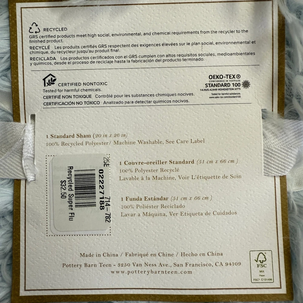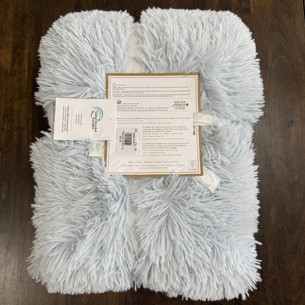 Long, luxe and ultra-fluffy faux fur makes our reversible duvet cover and sham supercool and cuddle-ready. The silky fur is backed in recycled microfiber for a smooth finish, and you can rest easy knowing it's gentler on the planet. OEKO-TEX® STANDARD 100: tested for 1000+ harmful substances to keep you and your family safe from chemicals common to textile manufacturing. 14.HUS.42449 HOHENSTEIN HTTI. Made from 100% recycled polyester with soft and shaggy cover and reverses to 100% recycled polyester microfiber. Twin-sized duvet cover fits both standard twin and twin XL dorm mattresses. Sham reverse to a solid color. Duvet cover has interior ties and a hidden button closure to keep the duvet in place; sham has an overlap closure. Duvet Cover Twin/Twin XL: 68" wide x 86" long Standard Sham: 20" x 26" CARE AND MAINTENANCE Machine wash in cold water; gentle cycle. Use only non-chlorine bleach, if needed. Tumble dry on low heat. Do not iron. Shipping & handling: We ship same or next day. Large comforters & quilts are vacuum packed with a reusable storage bag to save shipping cost and preserve the item. Questions: Please reach out. We respond very quickly. We strive for 5-star service in our product quality, shipping speed & customer service. We know you have many choices on eBay and appreciate that you have chosen to shop with us. Zoe's Castle | eBay Stores