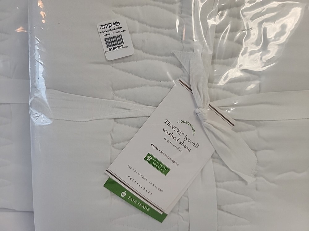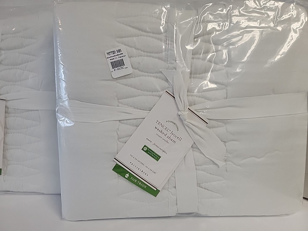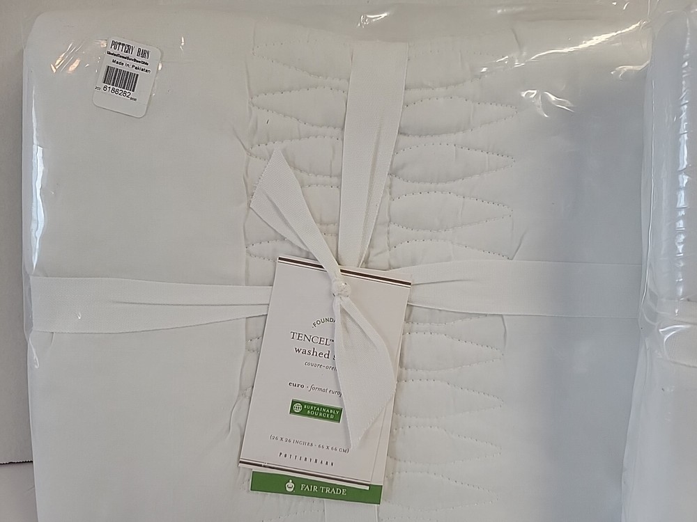 Up for auction is this POTTERY BARN TENCEL LYOCELL WASHED EURO WHITE PILLOW SHAMS 26X26 LOT OF 2 NEW AS PICTURED Items ship to your Paypal confirmed address only (no shipping to unconfirmed addresses). Bid with confidence as I am great to work with and WILL SHIP PROMPTLY! Please ask all questions prior to purchase as Returns are Not Accepted.