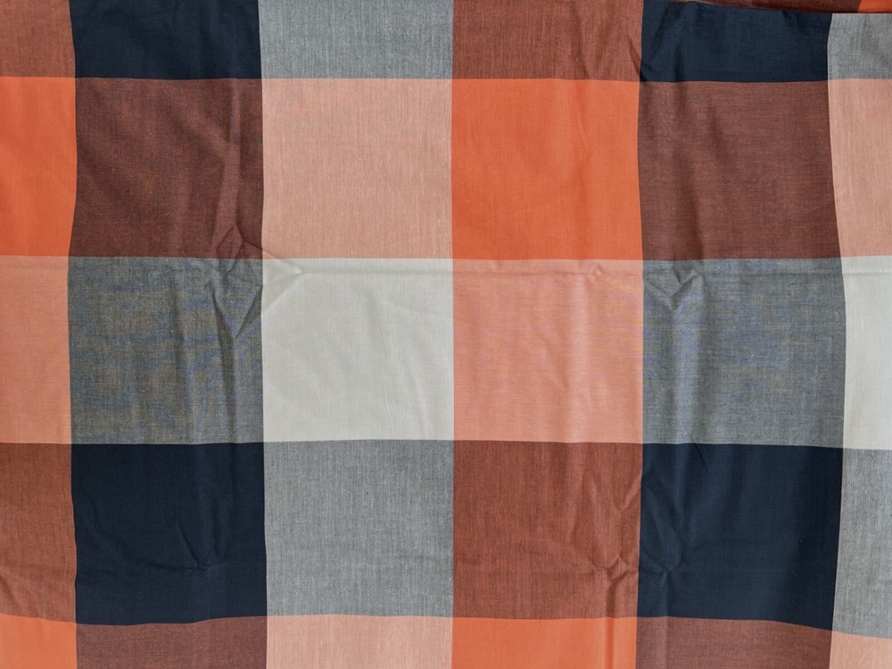 pottery barn teen PBTeen Champion Check Duvet Cover only! 100% cotton Size: Twin 68 x 86" Color: orange and navy see pictures Classic gingham gets a colorful makeover on this boldly hued and supremely soft bedding. Duvet cover reverse to self. Duvet cover has interior ties and a hidden button closure; Twin-sized duvet cover fits both standard twin and twin XL dorm mattresses. Machine wash. Imported. Items are from a smoke free, pet friendly home!