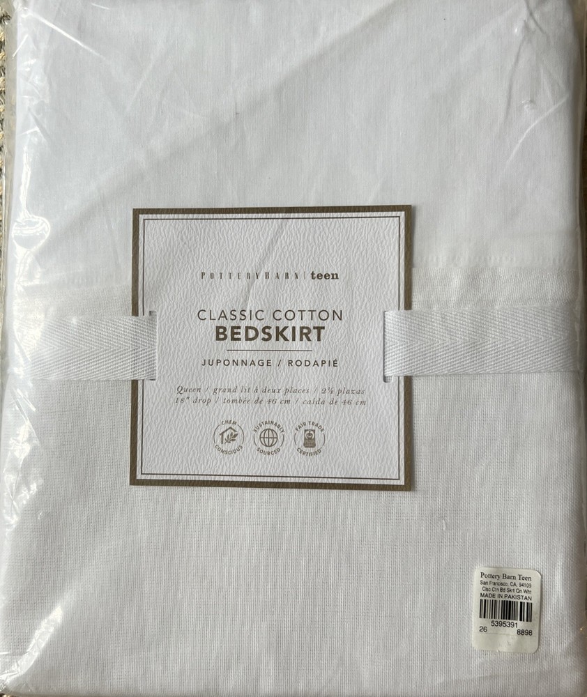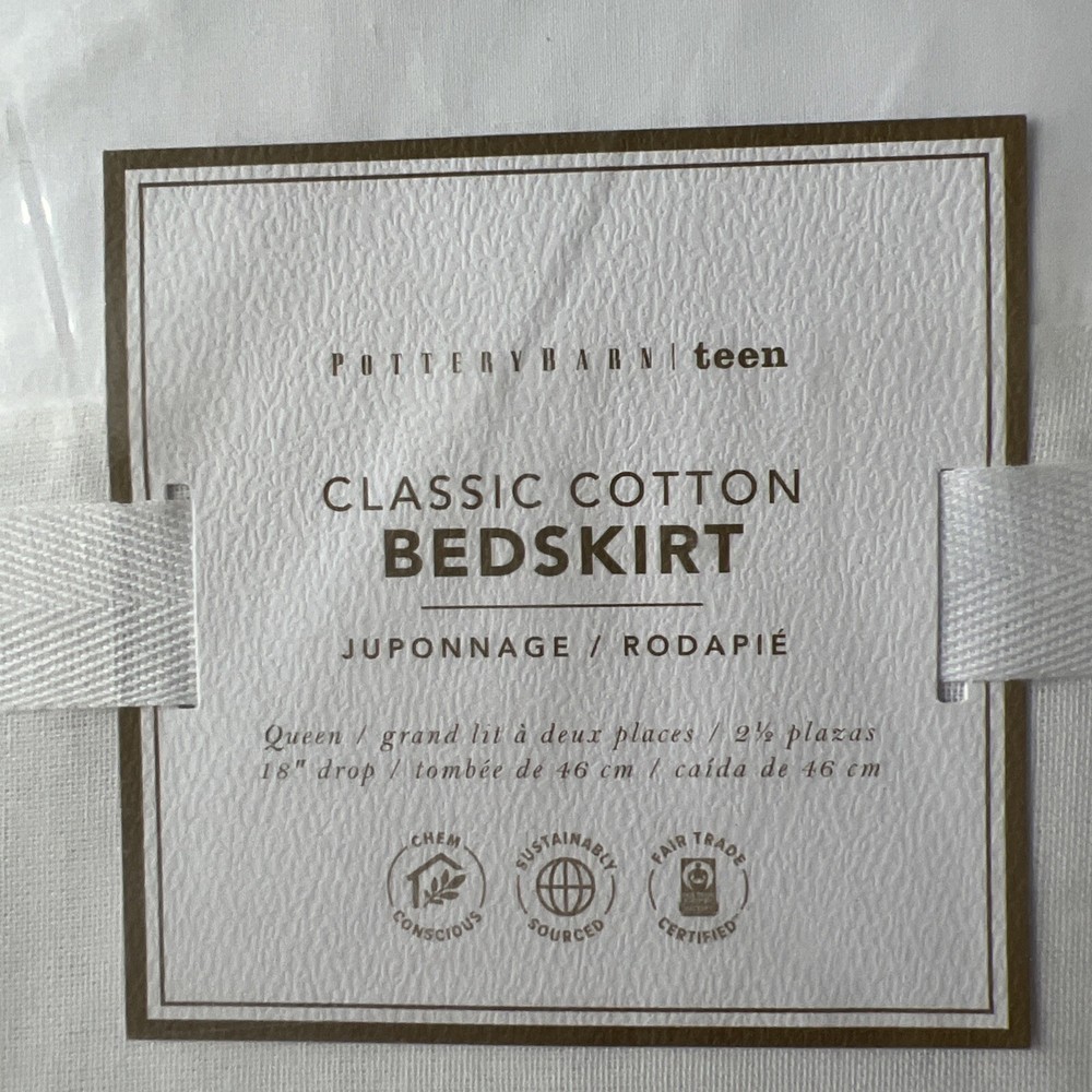 Add a touch of modern elegance to your bedroom with this classic cotton bed skirt from Pottery Barn. With a solid color pattern and rectangular shape, this queen-sized bed skirt features an 18-inch drop length and is made from high-quality cotton material. Ideal for both teens and adults, this bed skirt is easy to care for and can be machine washed. Perfect for any bedroom, this Pottery Barn bedding model is a must-have for any modern-style enthusiast. Elevate your bedding collection with this stylish and practical bed skirt that will complement any room decor.