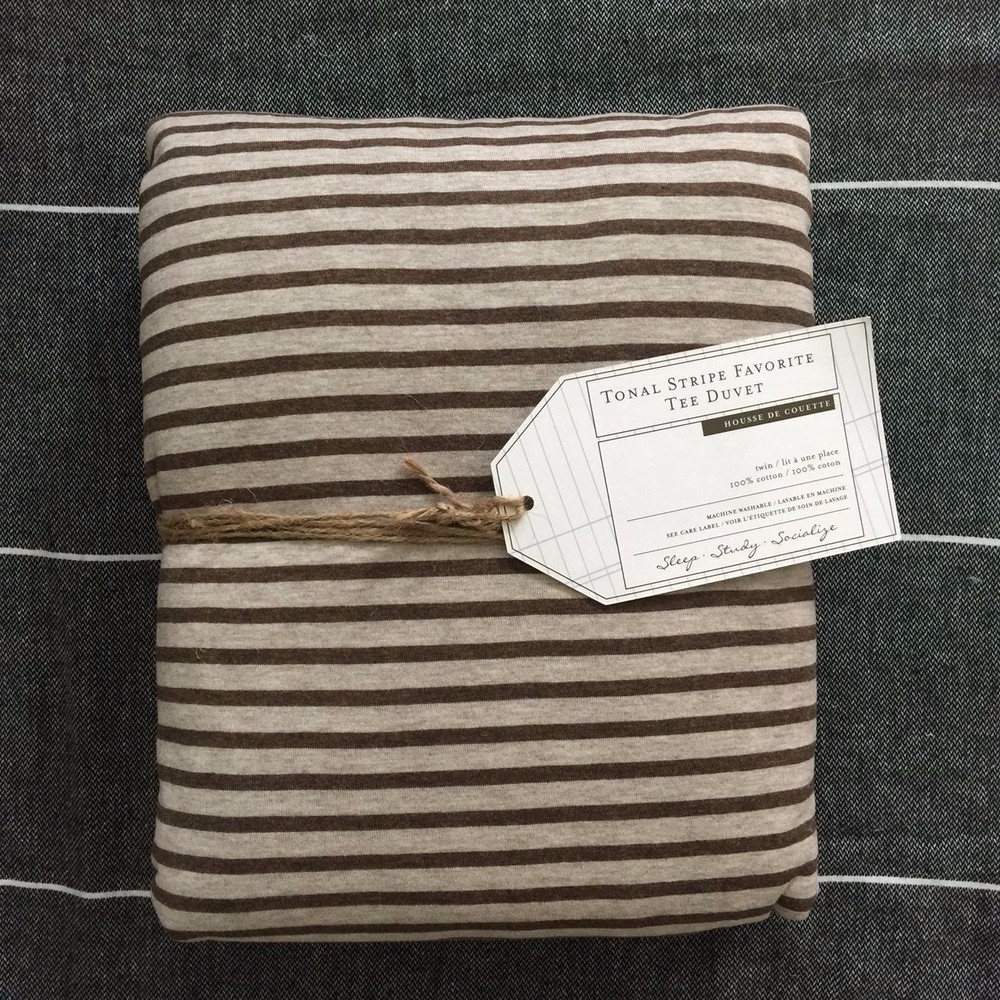 pottery barn teen tonal stripe favorite tee duvet cover only 100% cotton jersey, 140 grams per square meter. Size: twin 68 x 86" Color: brown heather see pictures Our soft cotton jersey duvet cover has the relaxed, comfy style of your favorite tee. Mix and match these cool heather colors with other favorite tee bedding to add a great casual look to your sleep space. Machine wash. Imported. New in Original Packages from a smoke free, pet friendly home! txzj pxzj11633 txzj42