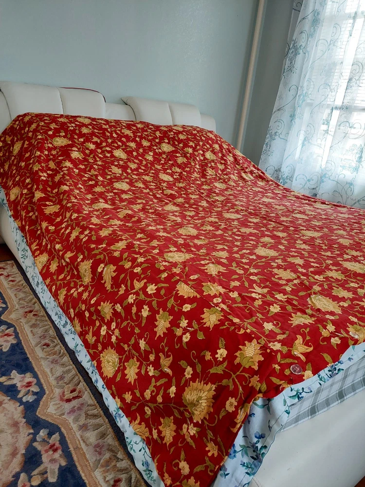Stunningly lovely silk topper. Exactly as depicted/described. Well made, zero snags or flaws, and in like-new condition. Seller packaged well & shipped quickly. Thanks for an excellent price point and transaction.