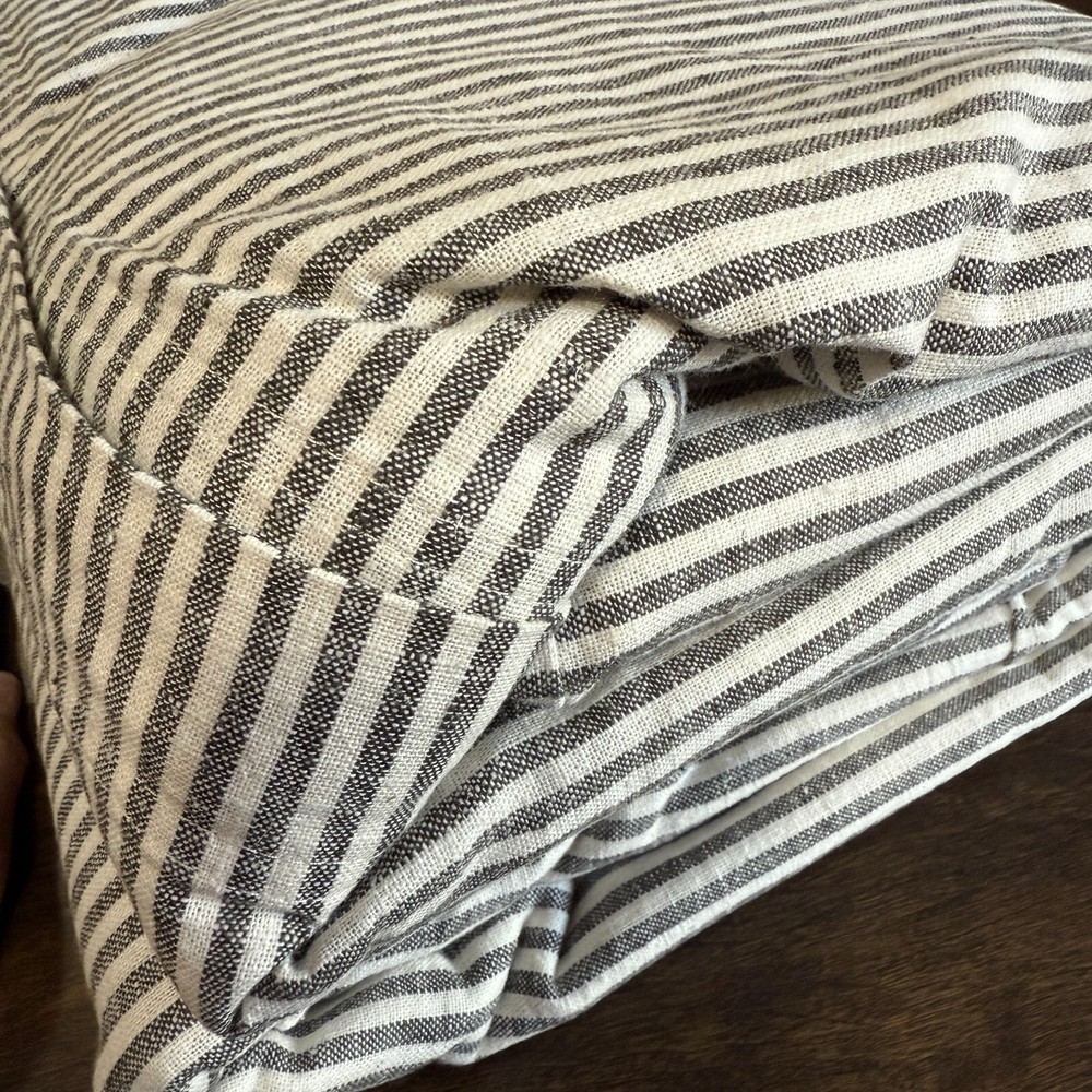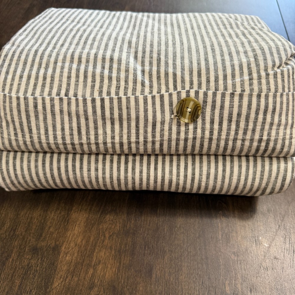 Construction Made from 55% linen and 45% cotton. Yarn dyed for rich and lasting color that wears well over time. Duvet and shams reverse to the same stripe pattern. Duvet and shams feature button closure. Duvet, sham, and insert sold separately. Imported. Care Machine wash in cold water; gentle cycle. Use only non-chlorine bleach when needed. Tumble dry on low heat; remove promptly. Warm iron as needed. Shipping & handling: We ship same or next day. Large comforters & quilts are vacuum packed with a reusable storage bag to save shipping cost and preserve the item. Questions: Please reach out. We respond very quickly. We strive for 5-star service in our product quality, shipping speed & customer service. We know you have many choices on eBay and appreciate that you have chosen to shop with us. Zoe's Castle | eBay Stores