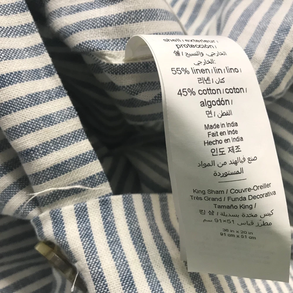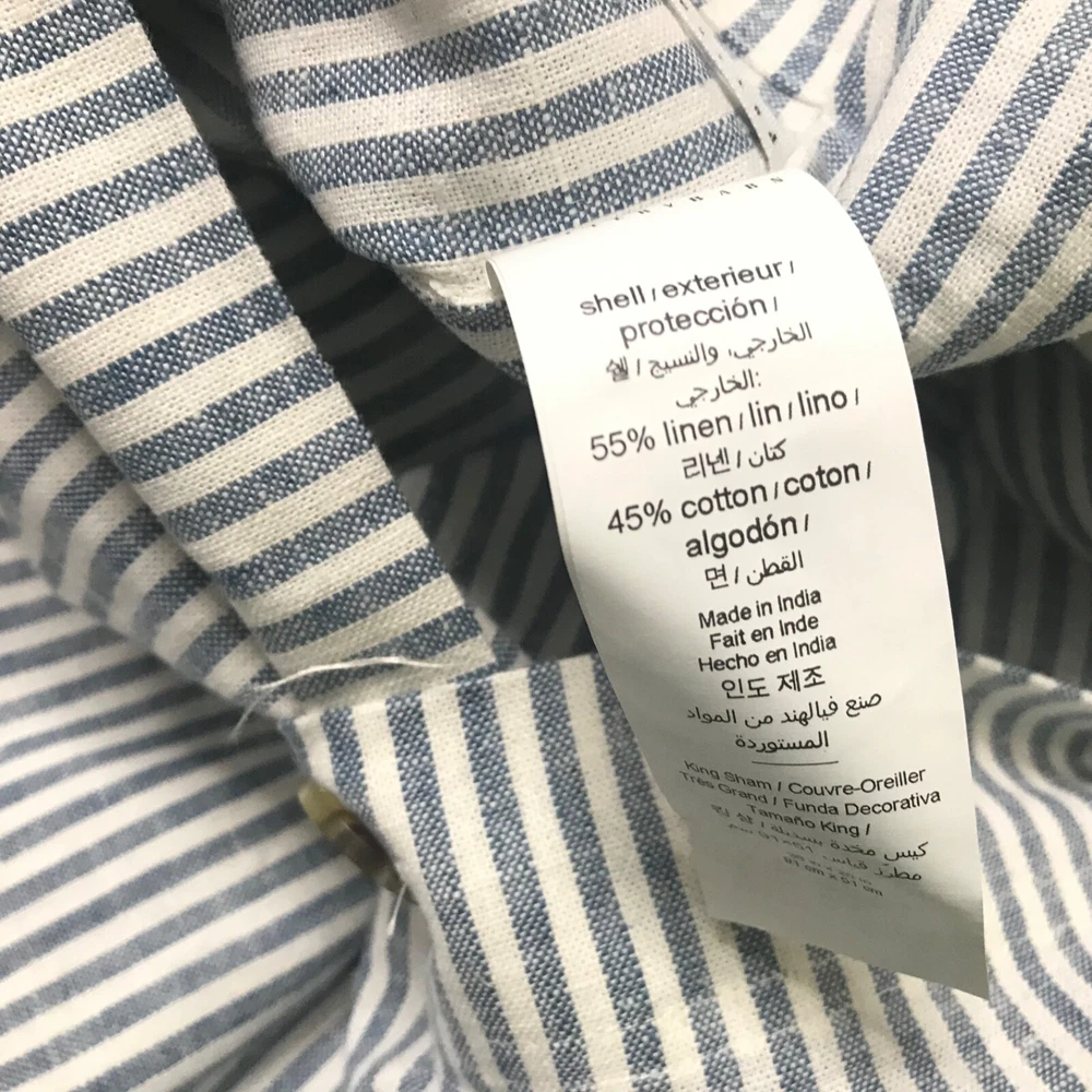 POTTERY BARN Wheaton Striped Cotton Linen Sham Chambray King 36x20” READ E39 EP Has stain on it.See pic 4,5,6