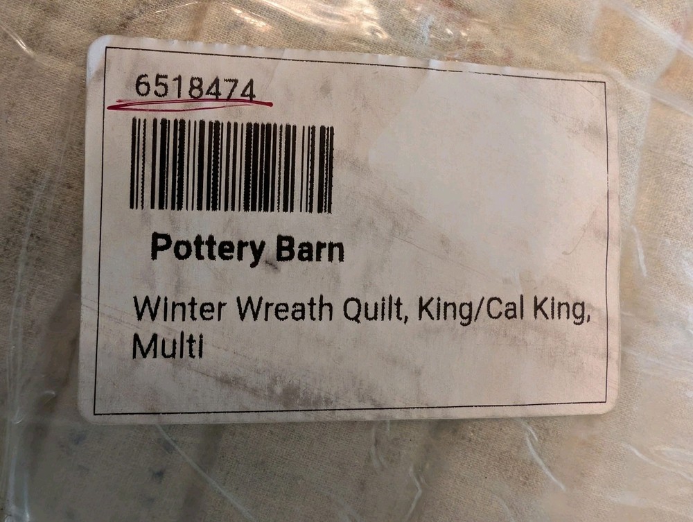 POTTERY BARN Winter Wreath Quilt - King/CKing-Multi- OPEN BOX Handcrafted from 100% cotton. Quilt is filled with 100% polyester. Reverses to coordinating pattern. 92x108" SHIPPED FREE!