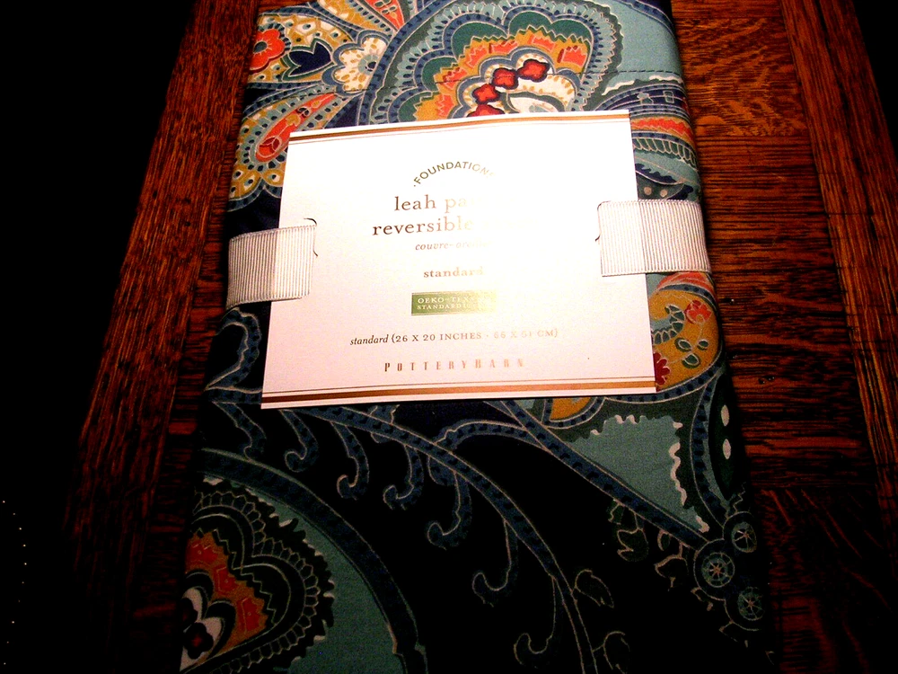 POTTERYBARN FOUNDATIONS LEAH PAISLEY REVERSIBLE SHAM PAIR MEASURING 26 X 20 INCHES,STANDARD SIZE, MULTI COLORS OF BLUES, RUST, WHITE, BEIGE AND MORE, 100% COTTON WITH 5% ORGANIC COTTON AND NEW WITH TAGS. ```````````````````````````````````````````````````````````````````````````````````````````````````````````````````````````````````````````````````````````````````````````````````````````````````````````````````````````````