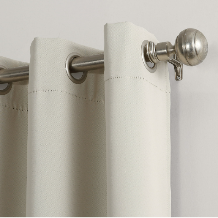 Sun Zero Nolan Curtain Panels infuse a modern sophistication into any living space. Equipped with built-in metal grommets for easy hanging on standard curtain rods up to 1.5" in diameter. Sun Zero Blackout technology blocks out most outside light, offers outside noise reduction by up to 25%, and decreases energy lost through your windows by up to 25%. Comfort is optimized with thermal properties that help keep summer heat and winter chill out of your home. Hang in your living room for enhanced privacy, or in your bedroom for a sounder, more uninterrupted sleep. Sold as individual panels measuring 40" width by 84" length. Measure carefully before selecting your desired size and quantity. Machine wash cold on gentle cycle. Use non-chlorine bleach when needed. Tumble dry on low heat, using a cool iron as needed. Blackout technology blocks out most unwanted light while enhancing privacy Energy efficient design reduces energy lost through your windows by up to 25 percent Thermal properties help keep summer heat and winter chill out of your home Noise reduction up to 25 percent helps you get a sounder, more uninterrupted sleep Built-in metal grommets fit curtain rods up to 1.5" in diameter Panels sold individually. Measure carefully prior to purchase. (Image features 2 panels) Curtain rod not included. Double rod may be needed for layering.