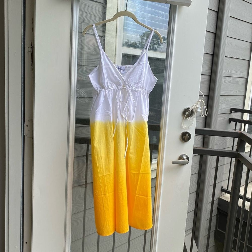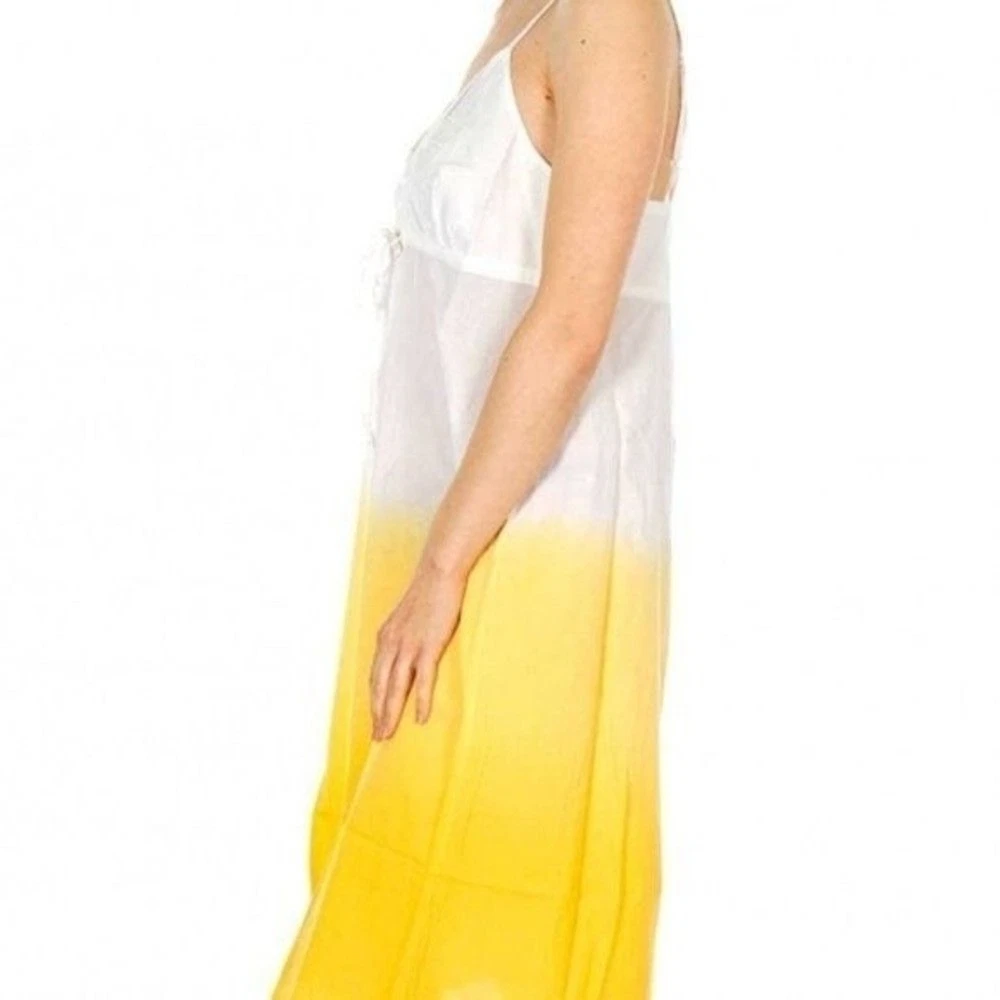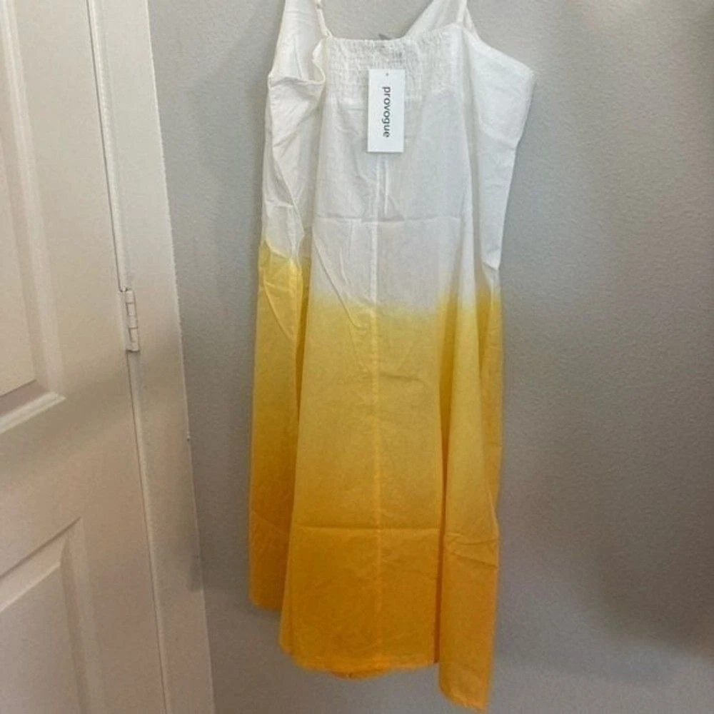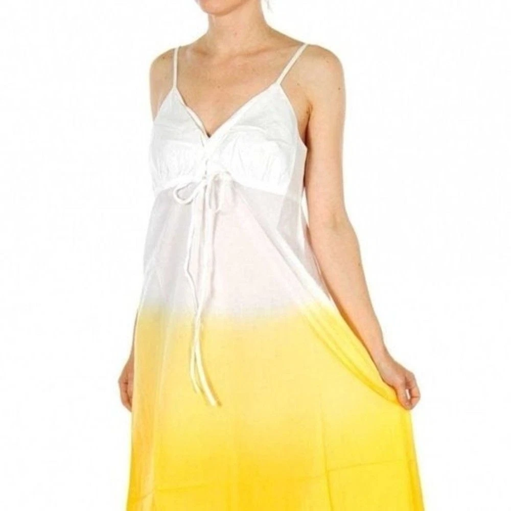 PROVOGUE Large Hello Summer Dip-Dye Tie Decor Sleeveless Non-Street Cotton White/Lemon Yellow Sundress 100% Cotton / No Stretch Size :Large Length:31 Bust pit to pit :19" Waist across: 23" Length shou...