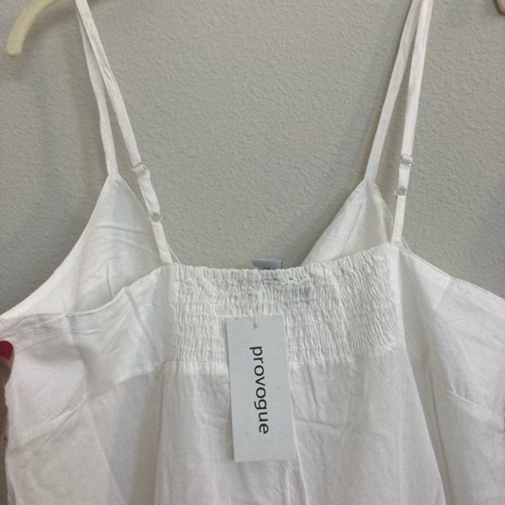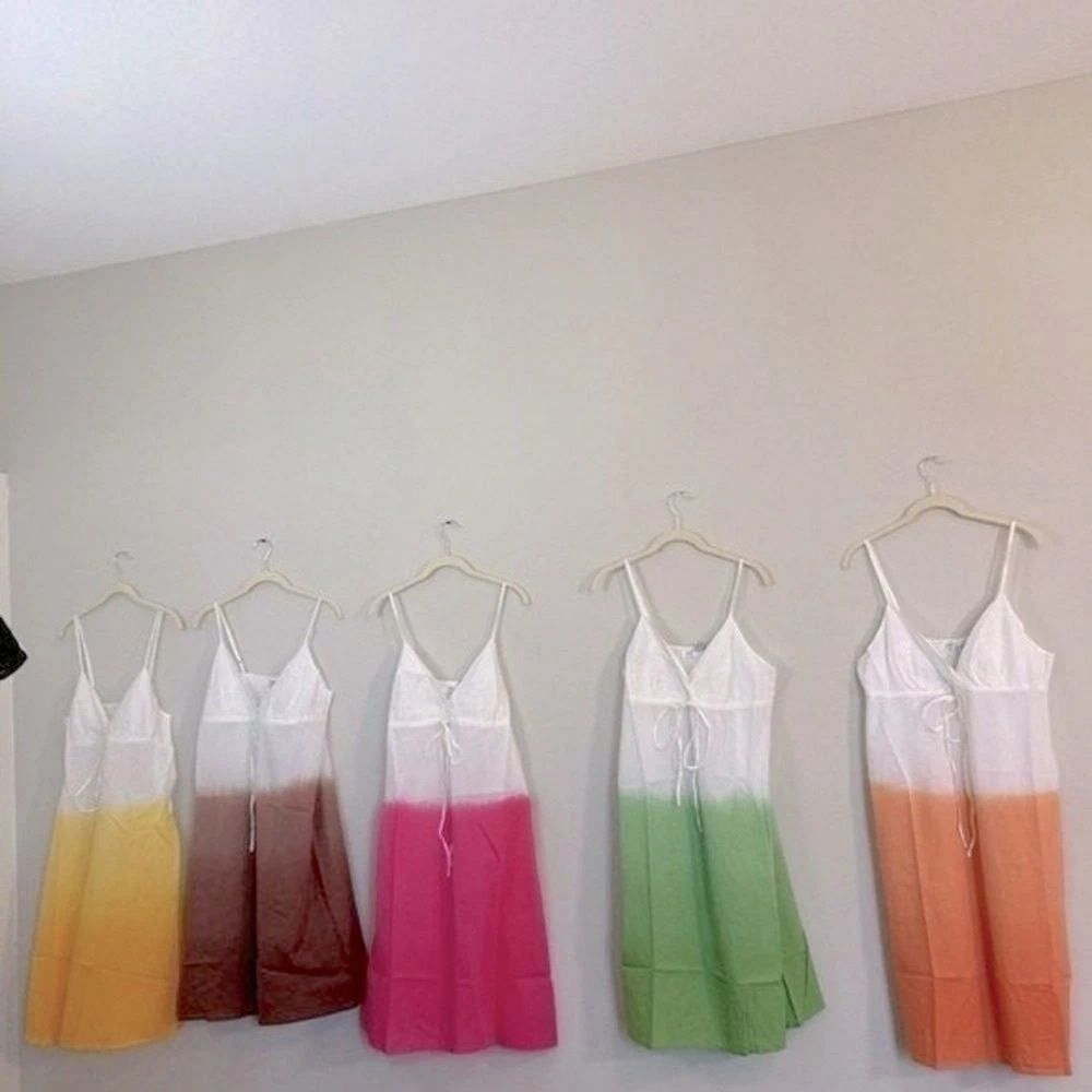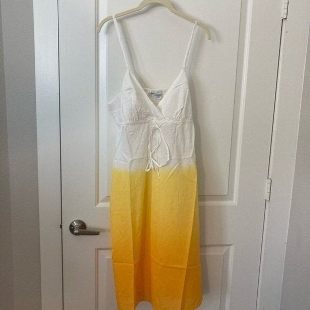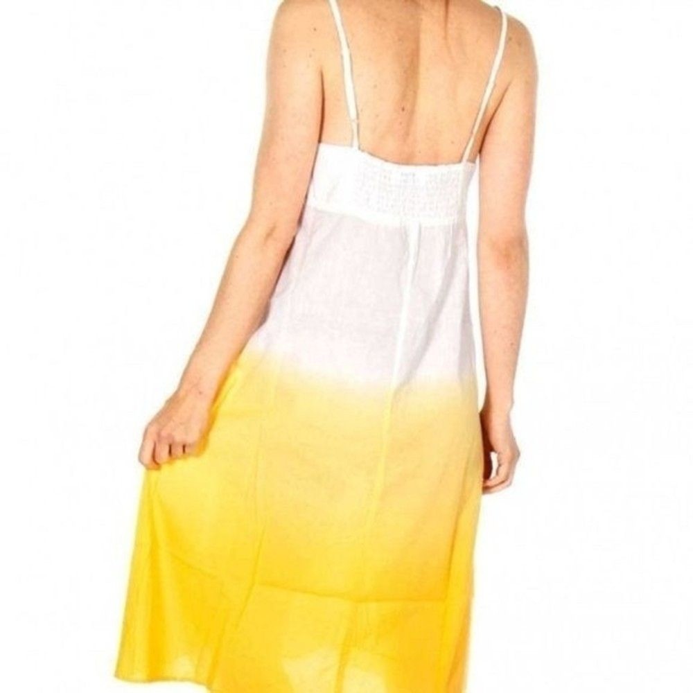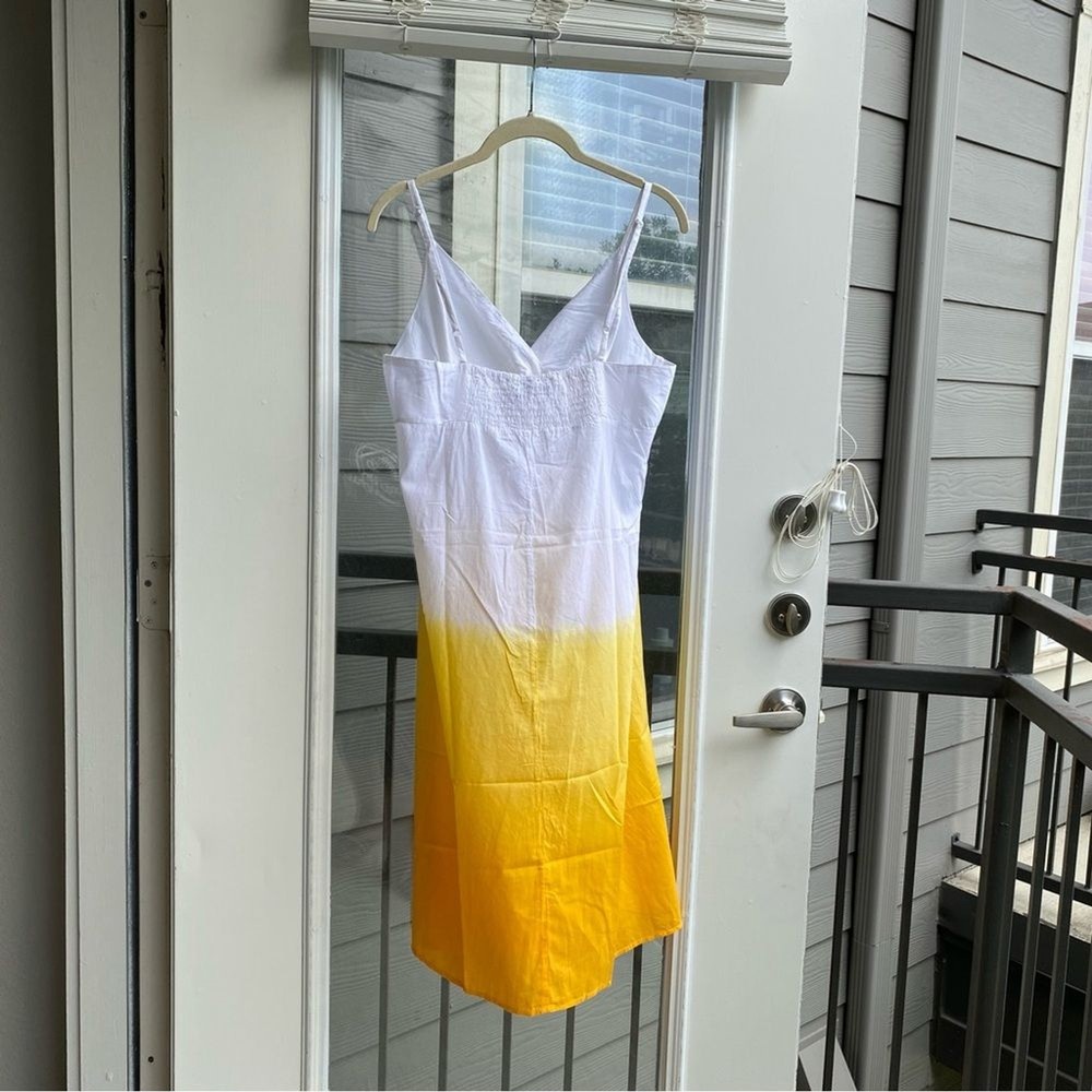 PROVOGUE Large Hello Summer Dip-Dye Tie Decor Sleeveless Non-Street Cotton White/Lemon Yellow Sundress 100% Cotton / No Stretch Size :Large Length:31 Bust pit to pit :19" Waist across: 23" Length shou...