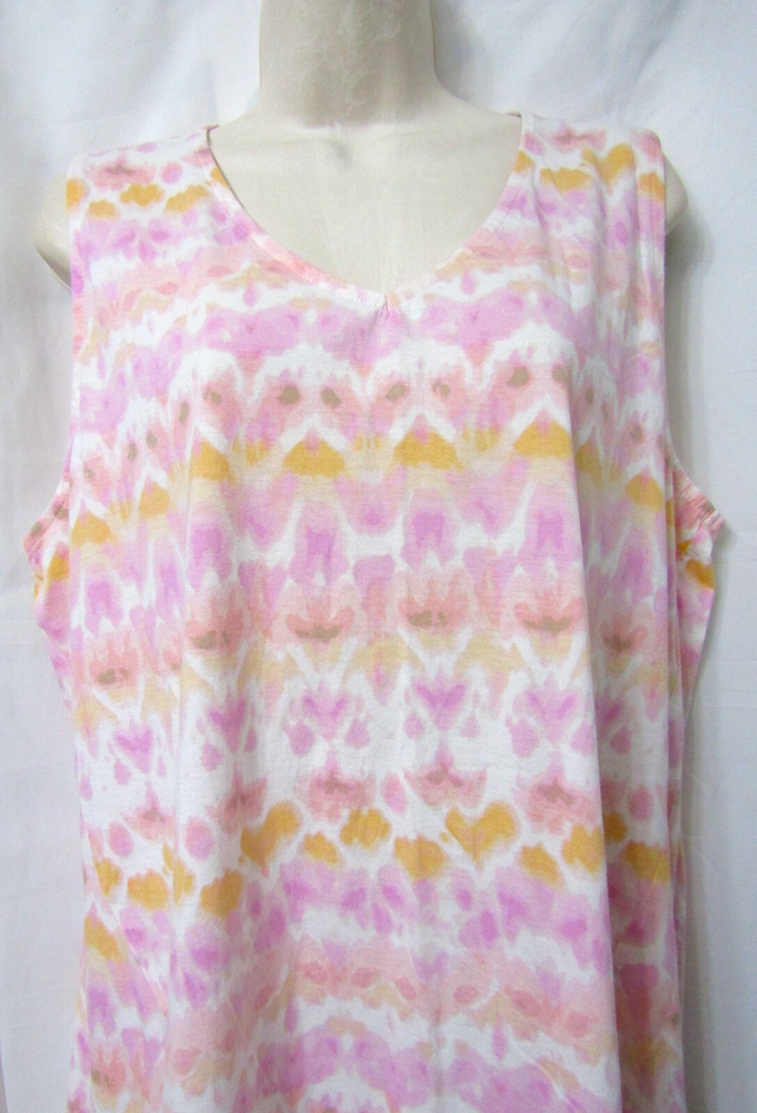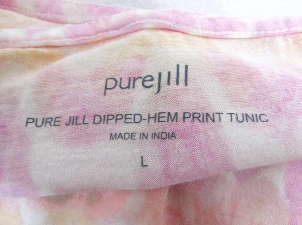 PURE JILL J. JILL Sleeveless Dipped Hem Tunic Tank Top Sz L New, without Tags Very Pretty Pink Pastel Print 100% Pima Cotton Knit Measures approx. 21" armpit to armpit and 29" from top shoulder seam to hem Smoke and pet free home