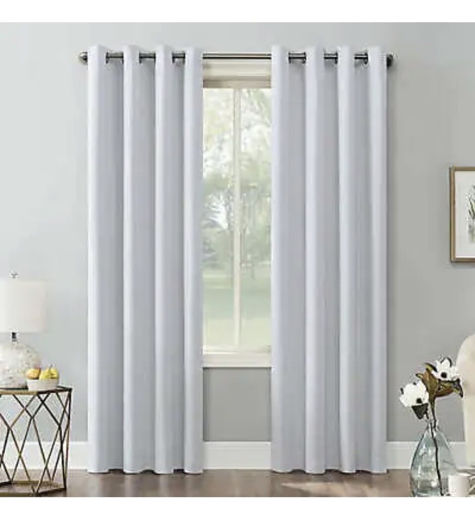 Pair Of Sun Zero 84-Inch Grommet Room Darkening Curtain Panels Dove White....