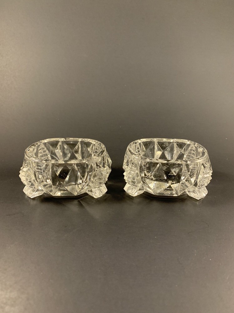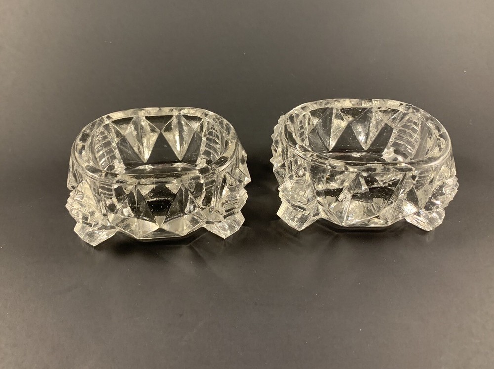 Discover the charm of these exquisite Vintage Clear Glass Footed Master Salt Cellars Diamond Pattern, available in a lot of two. In vintage used condition, these timeless pieces do sport chips and flea bites. Embrace the allure of wear that gracefully adorns the faceted sides and bottom, a testament to the rich history they carry. Elevate your holiday gifting with these master salt cellars – a perfect and unique present for someone special. These pieces not only embody a touch of nostalgia but also make a great addition to any collector's treasure trove. Check out my other listing for other salt cellar posts. See measurements in the photos. Please feel free to ask any questions. Combine shipping available to save on shipping costs.